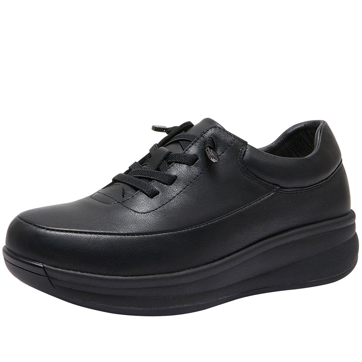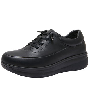 真皮摇摇鞋 2026春秋软底黑色妈妈鞋 防滑中老年休闲鞋 女厚底松糕鞋
