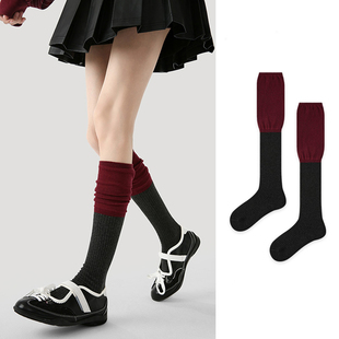 复古拼接长筒袜秋冬氛围堆堆袜百搭拼色显瘦简约ins袜子女 袜say