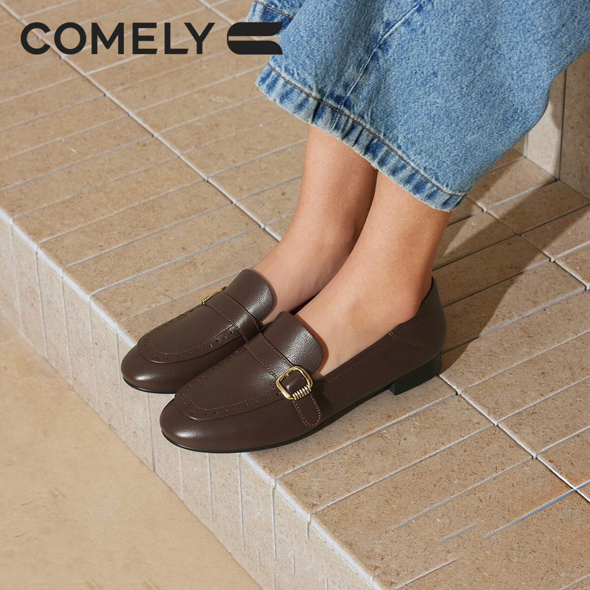 为您提供商品康莉软底羊皮小皮鞋 新款 圆头真皮雕花平底乐福鞋 一脚蹬 女26年春季的详细介绍,