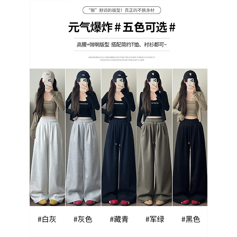 为您提供商品女春秋抽绳低腰胖mm300宽松显瘦垂感阔腿裤 200斤灰色运动卫裤 大码的详细介绍,