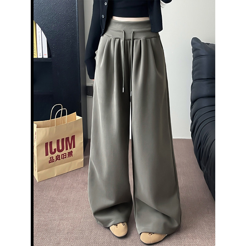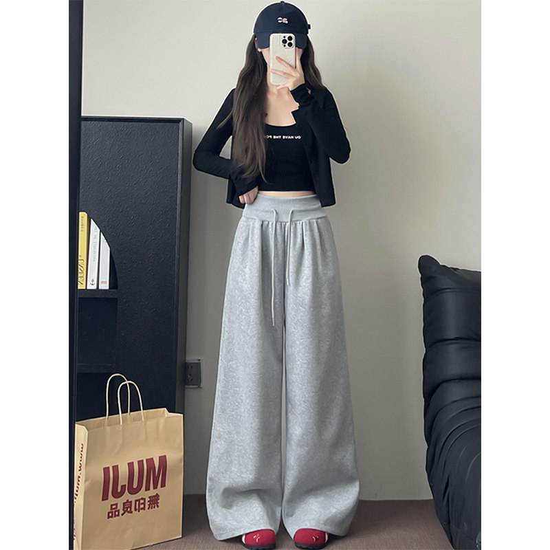 女春秋抽绳低腰胖mm300宽松显瘦垂感阔腿裤 200斤灰色运动卫裤 大码由