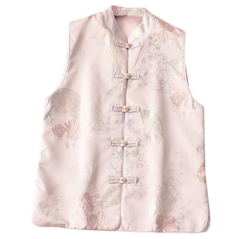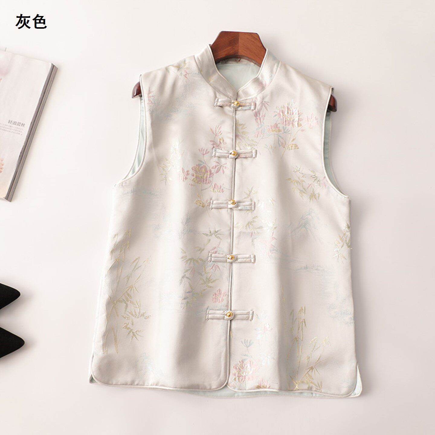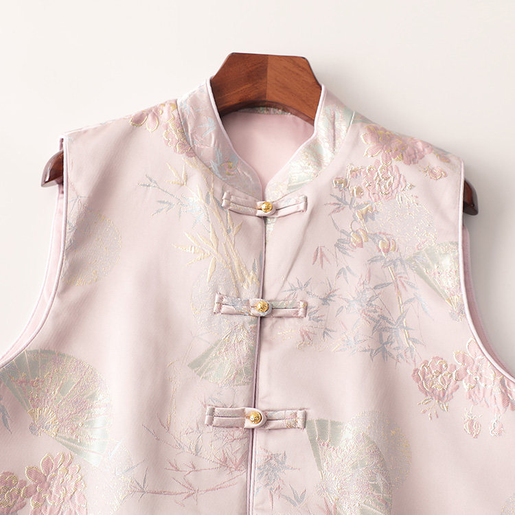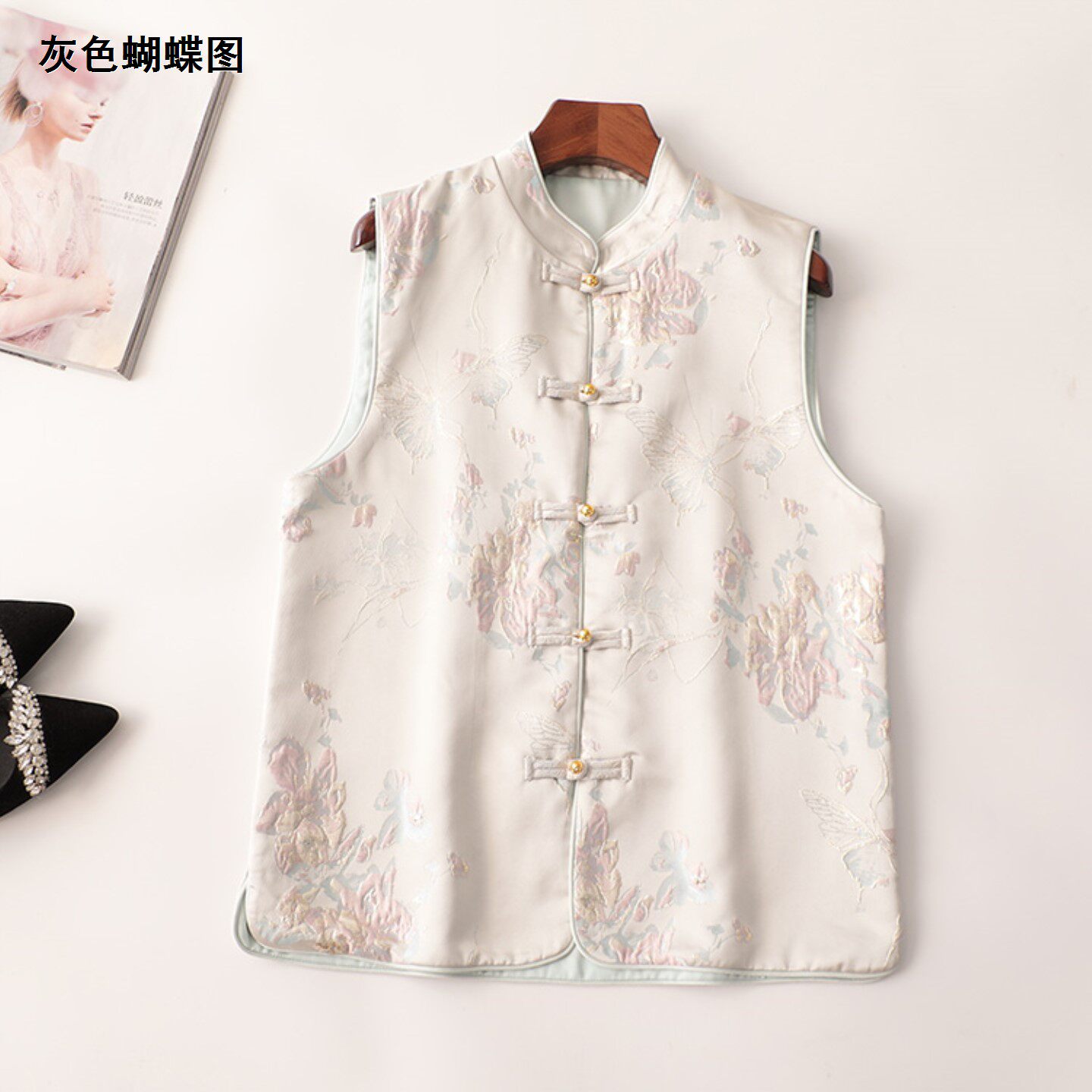 立领坎肩上衣唐装 马夹背心女外搭秋 国风马甲高级感宋锦无袖 新中式
