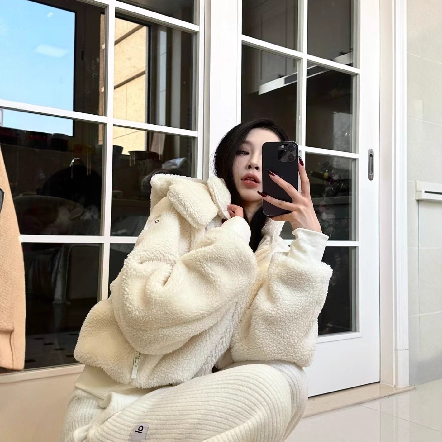 奶油泡芙羊羔毛连帽短款 拉链 肯豆同款 现货Al0GANT24秋冬新款