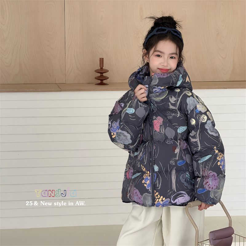 瑭伽2025冬新款 唐家潮2531 女童花色羽绒服外套儿童90白鸭绒童装