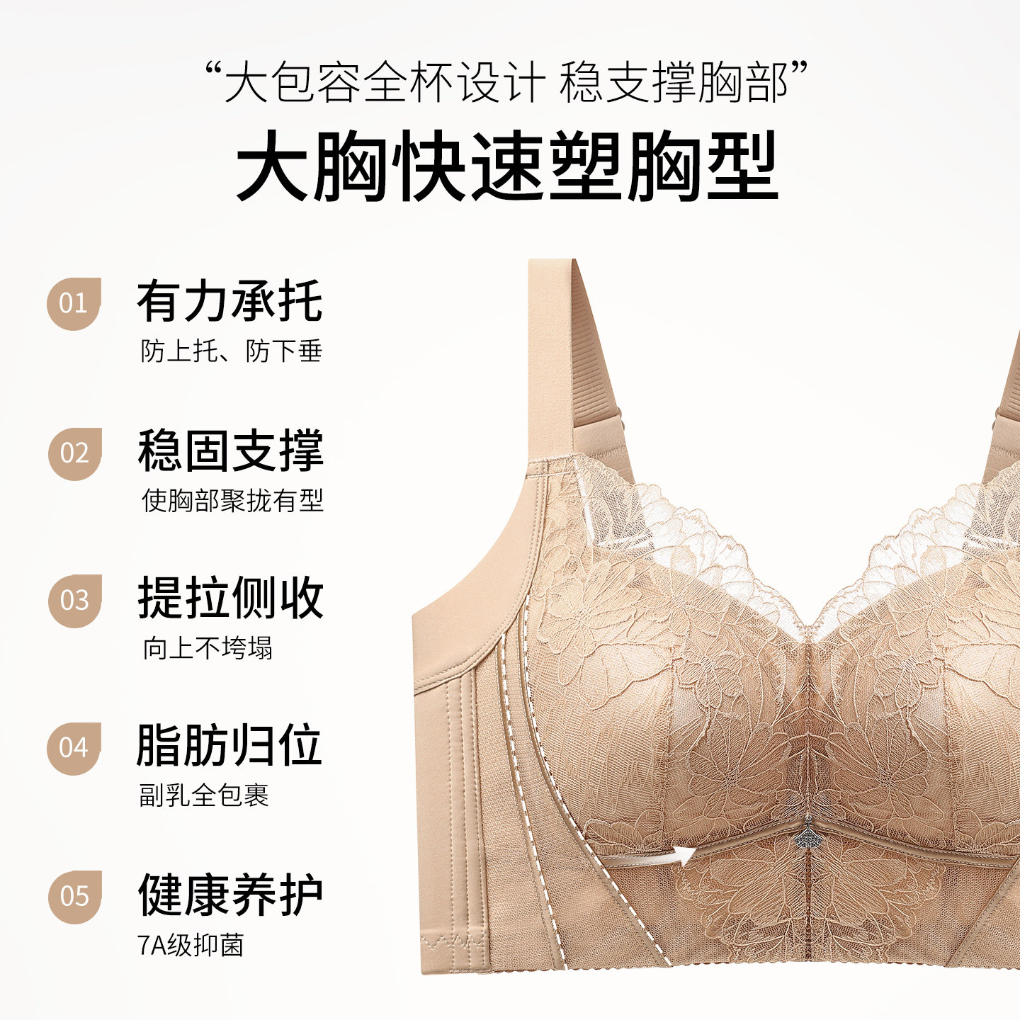 为您提供商品婷美秋冬全包容大胸塑形内衣固定杯收副乳防下垂显瘦蕾丝性感文胸的详细介绍,