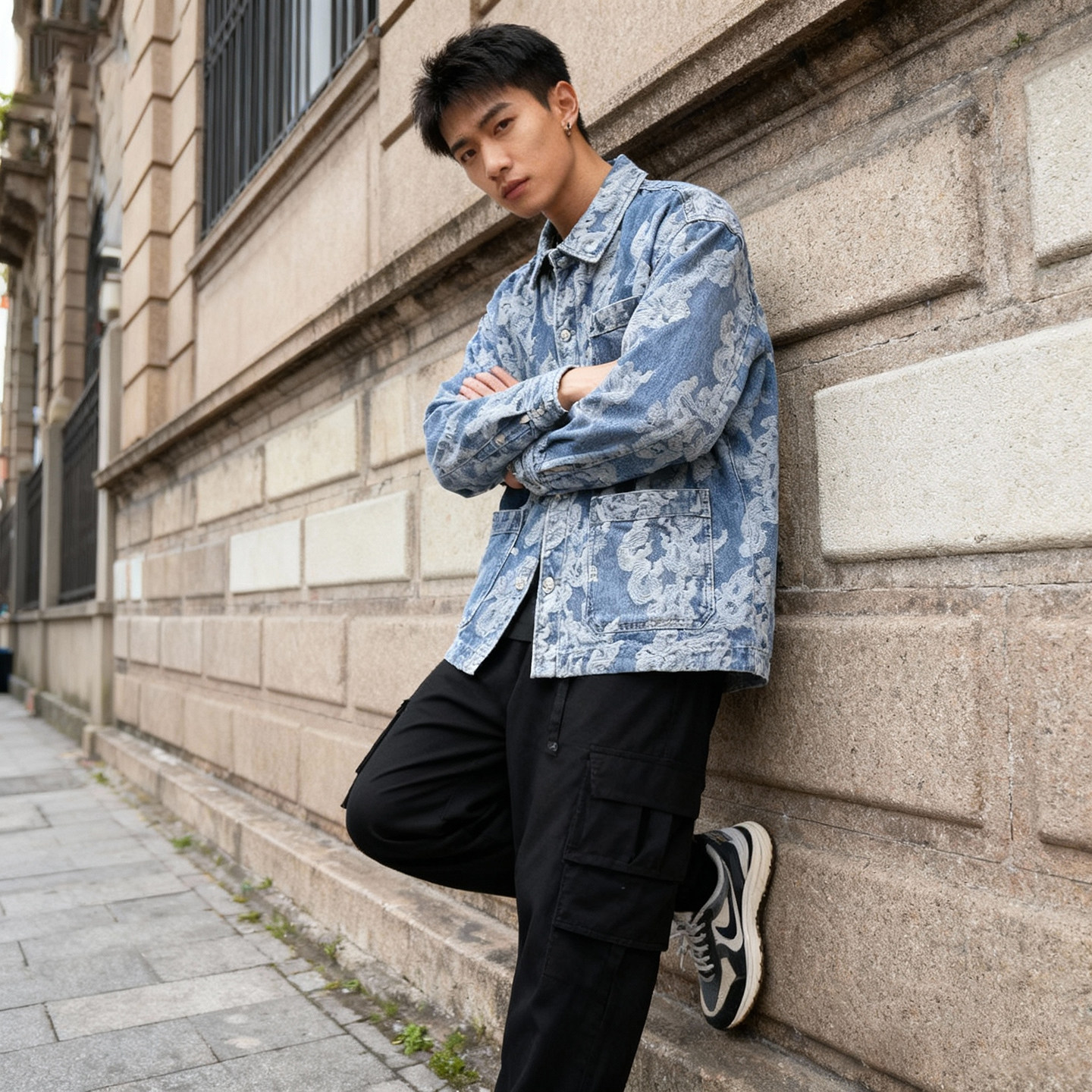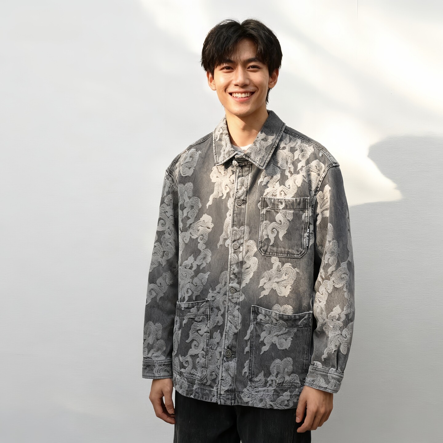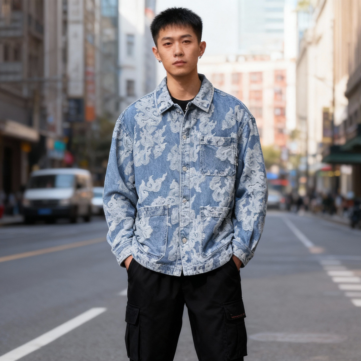 为您提供商品潮牌休闲外套宽松高街茄克新款 JEANS秋季 高端提花牛仔夹克男ABLE的详细介绍,