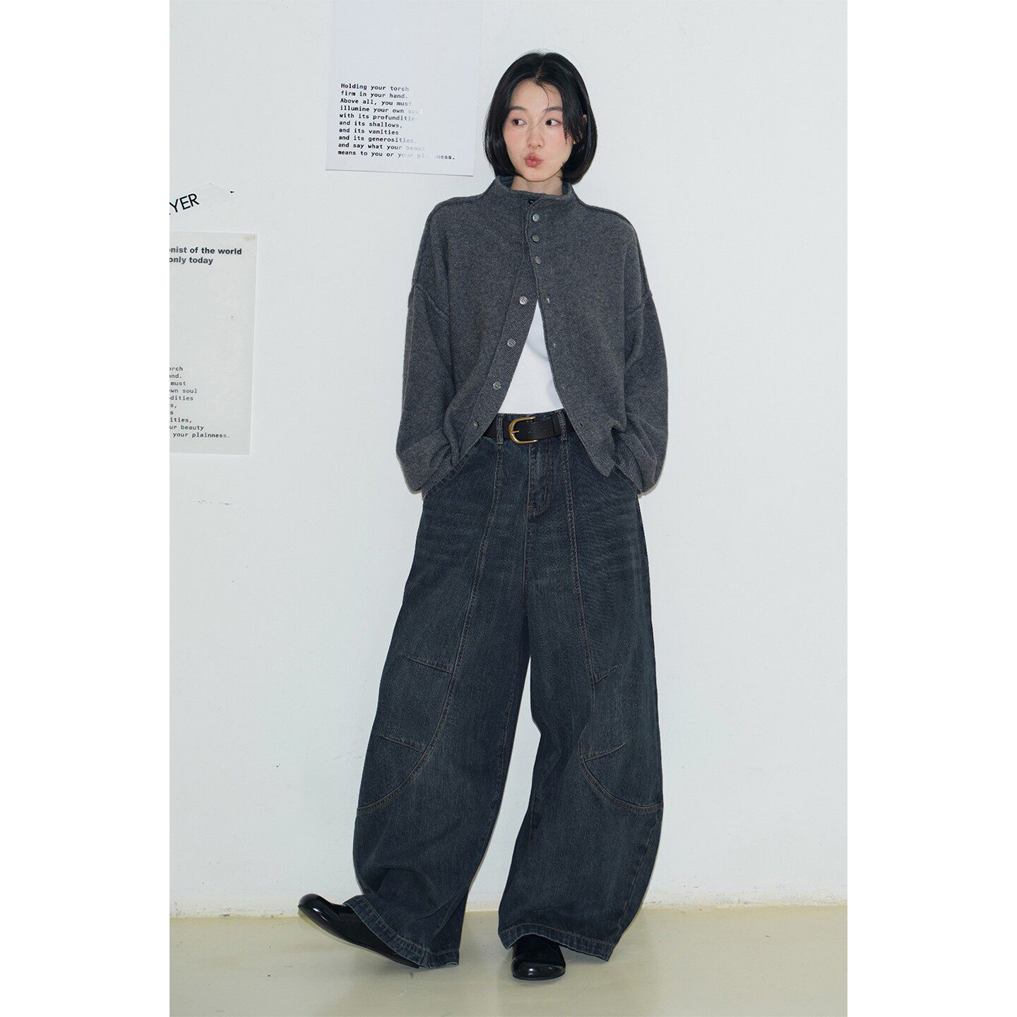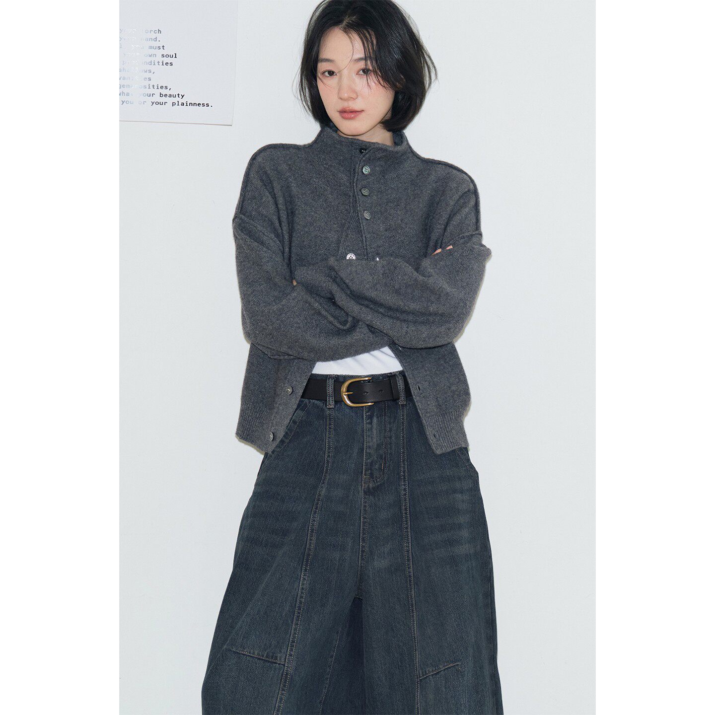 鹿与飞鸟 全羊毛立领外缝线慵懒风单排扣毛衣外套7110 小憩时光由