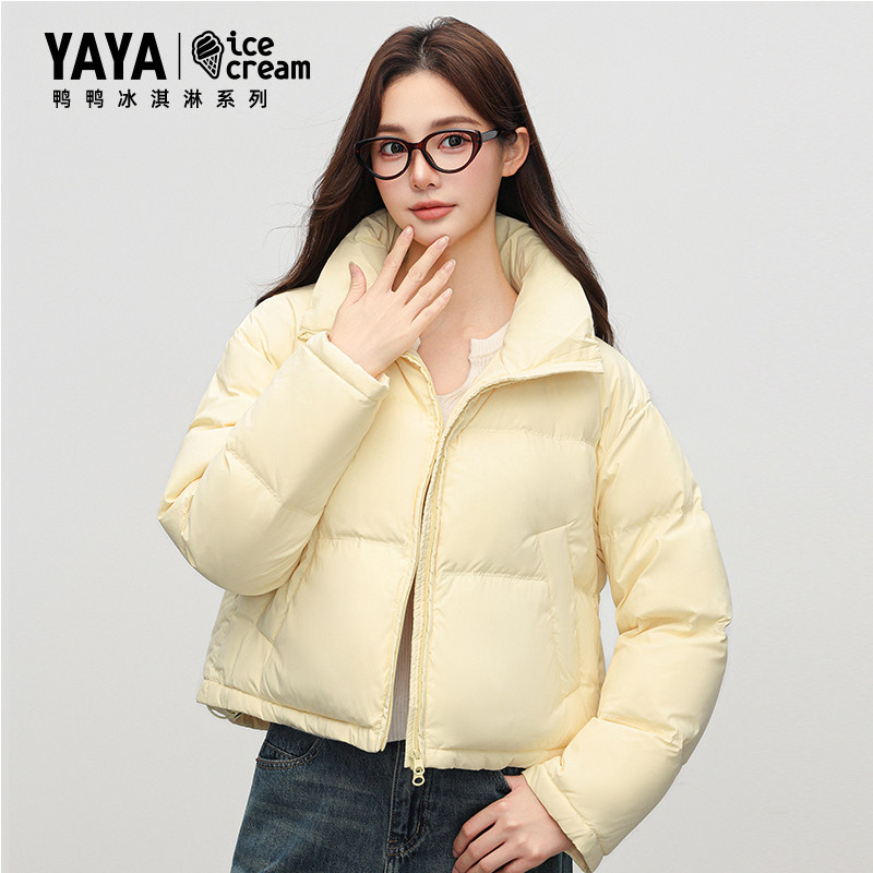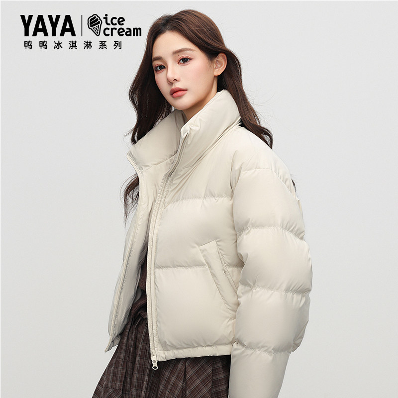 鸭鸭2025秋冬新品 羽绒服女时尚 简约立领鸭绒外套S 冰淇淋系列由