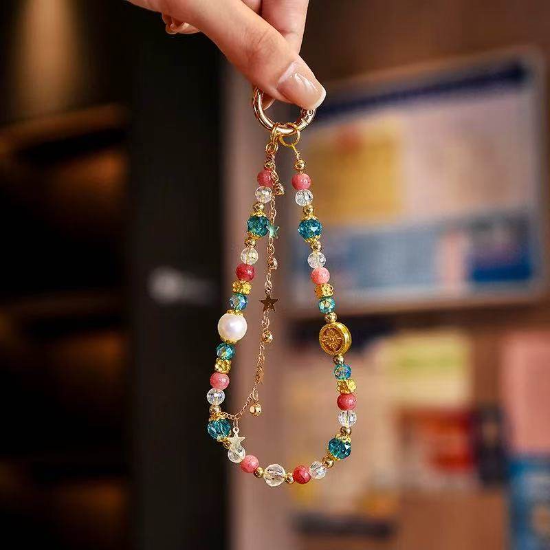 手机链蓝色星星手机壳挂绳简约ccd相机挂绳配饰串珠挂件饰品链条