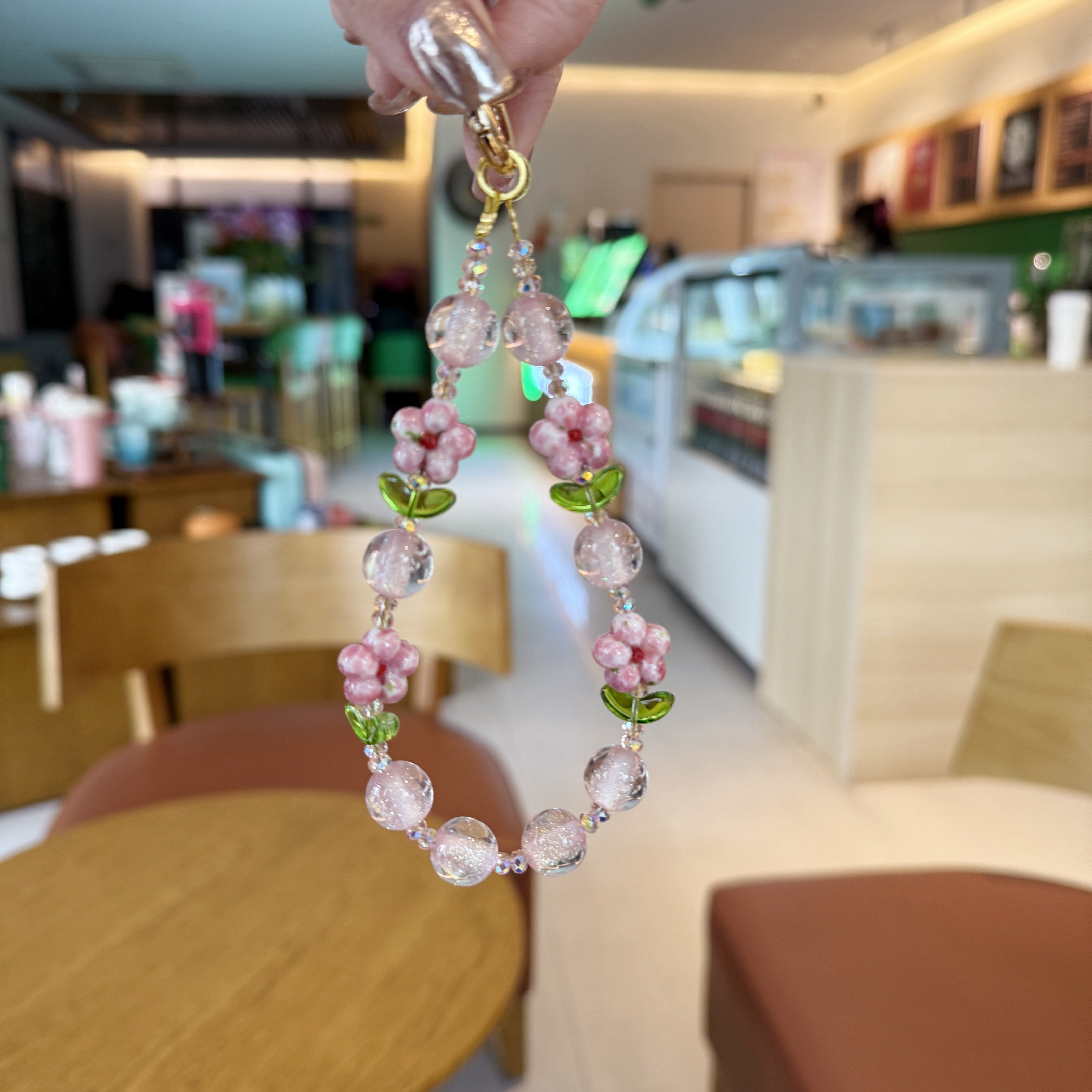 小众设计贝珠手机链挂件古风招财纳福手腕挂绳小清新绿色高级文艺
