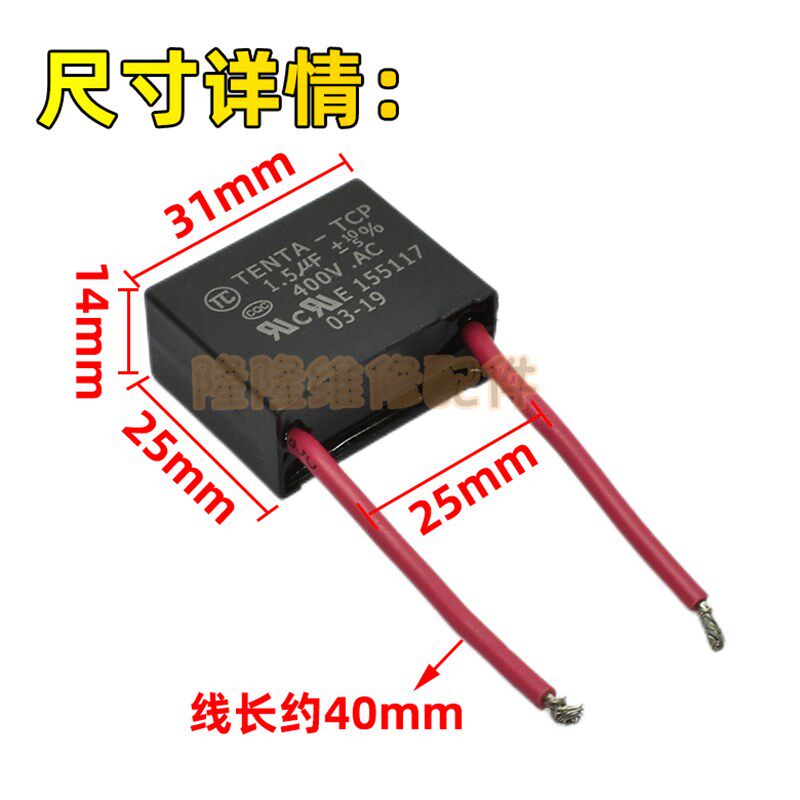为您提供商品带线电容器 1.5uF 两线启动电容 脚距25mm 400v 10%的详细介绍,