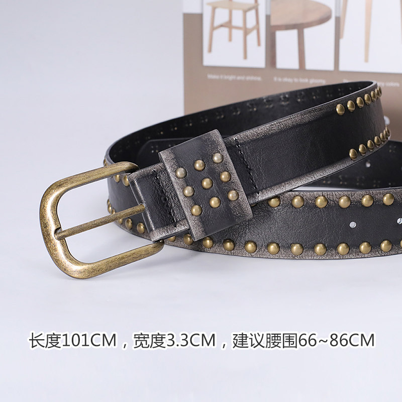 配牛仔裤 皮带百搭连衣裙腰链 复古棕色铆钉蝴蝶腰带女2026新款 美式
