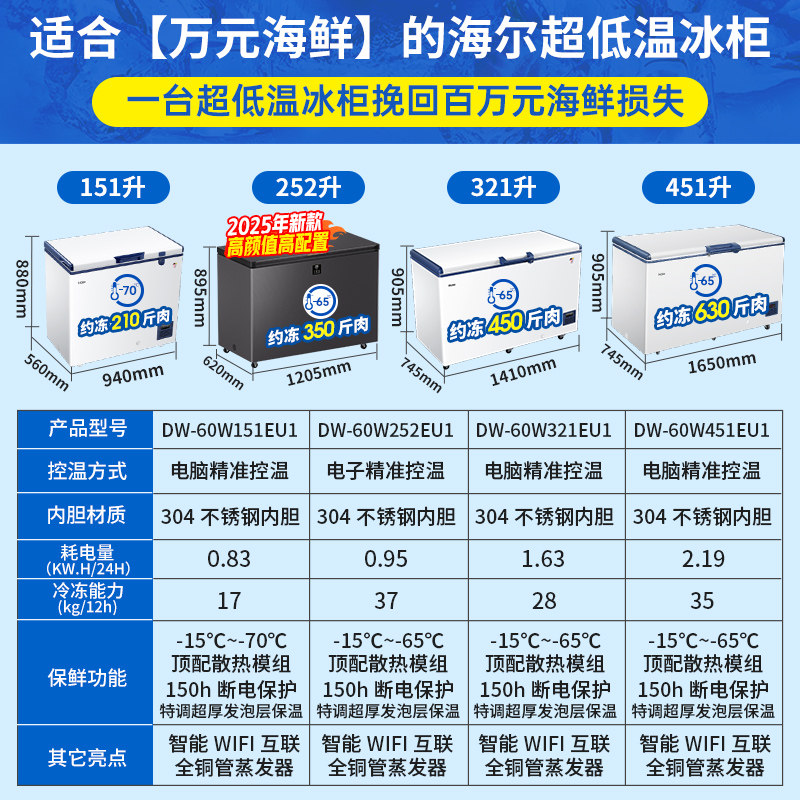 为您提供商品321 451升商用大容量海鲜冷柜 70度超低温151 海尔冰柜家用零下65的详细介绍,