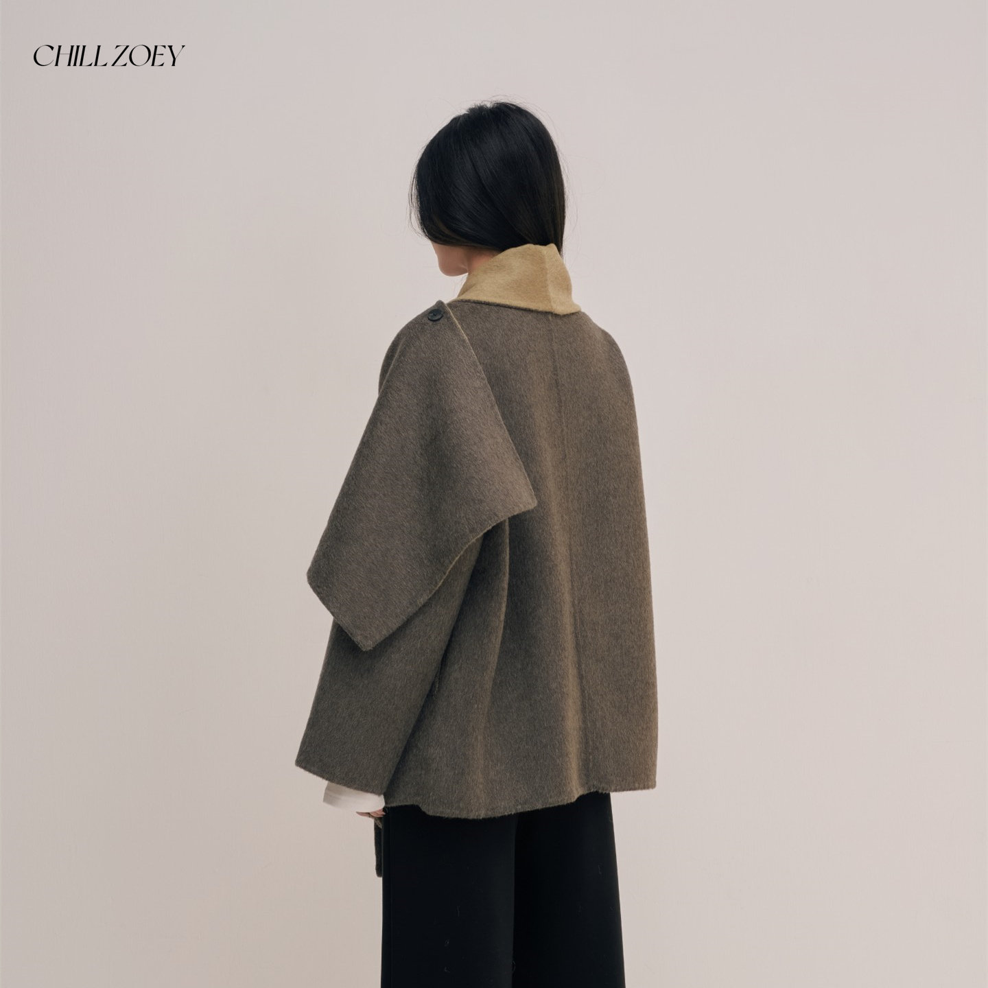 80%羊毛拼色围巾大衣斗篷式 上衣青珀双面色毛呢外套女 ZOEY CHILL