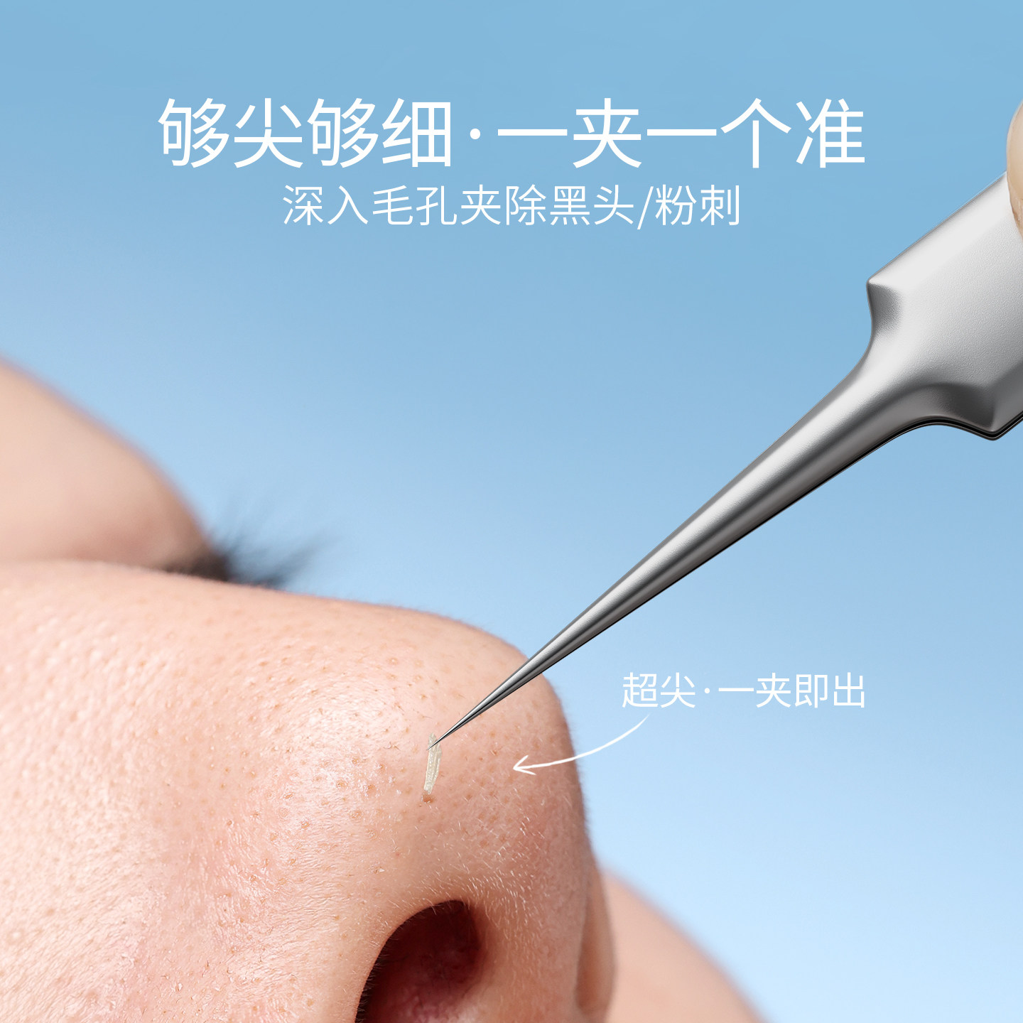 古迪超尖细胞夹微米磨砂不打滑镊子去黑头细粉刺针拔闭口专用套装