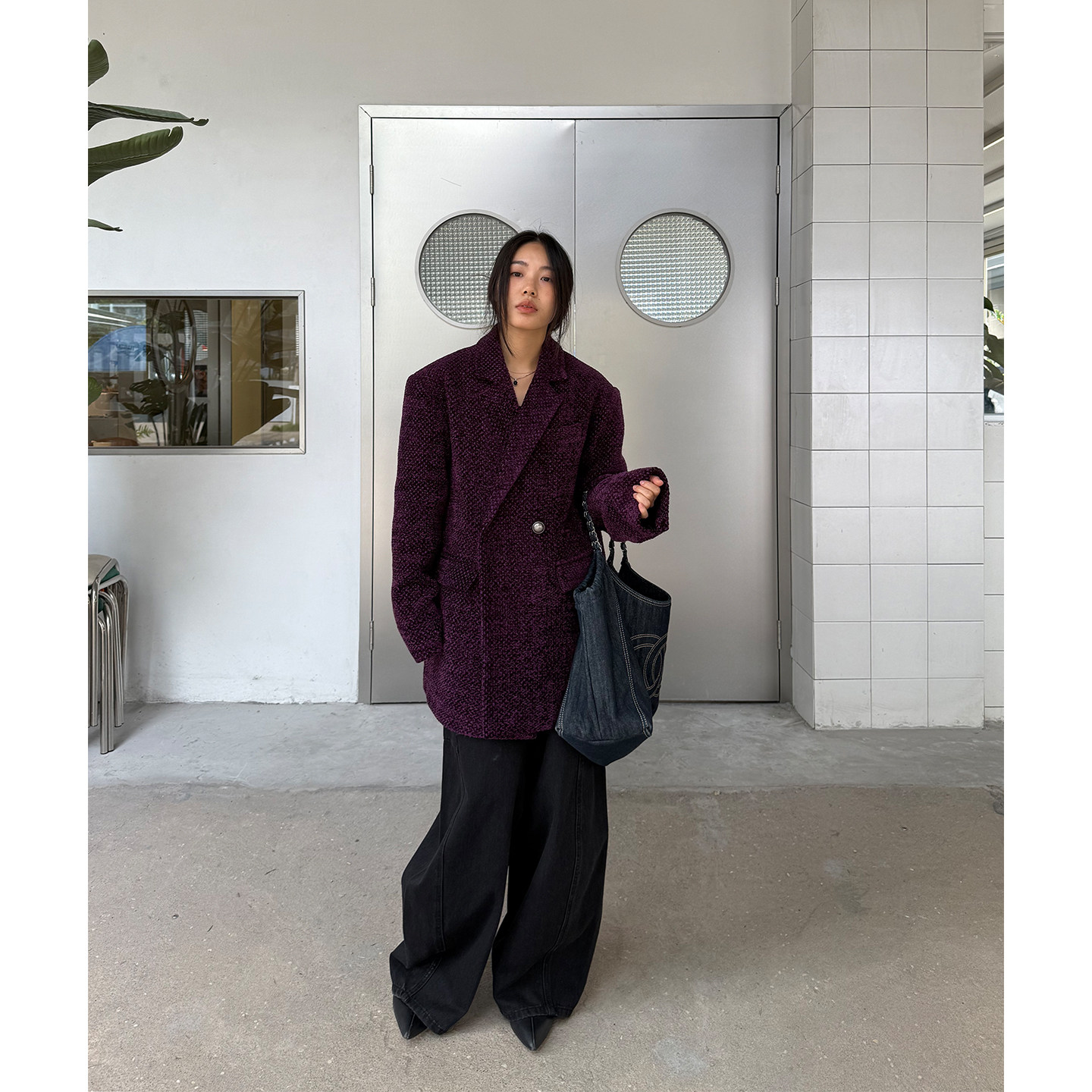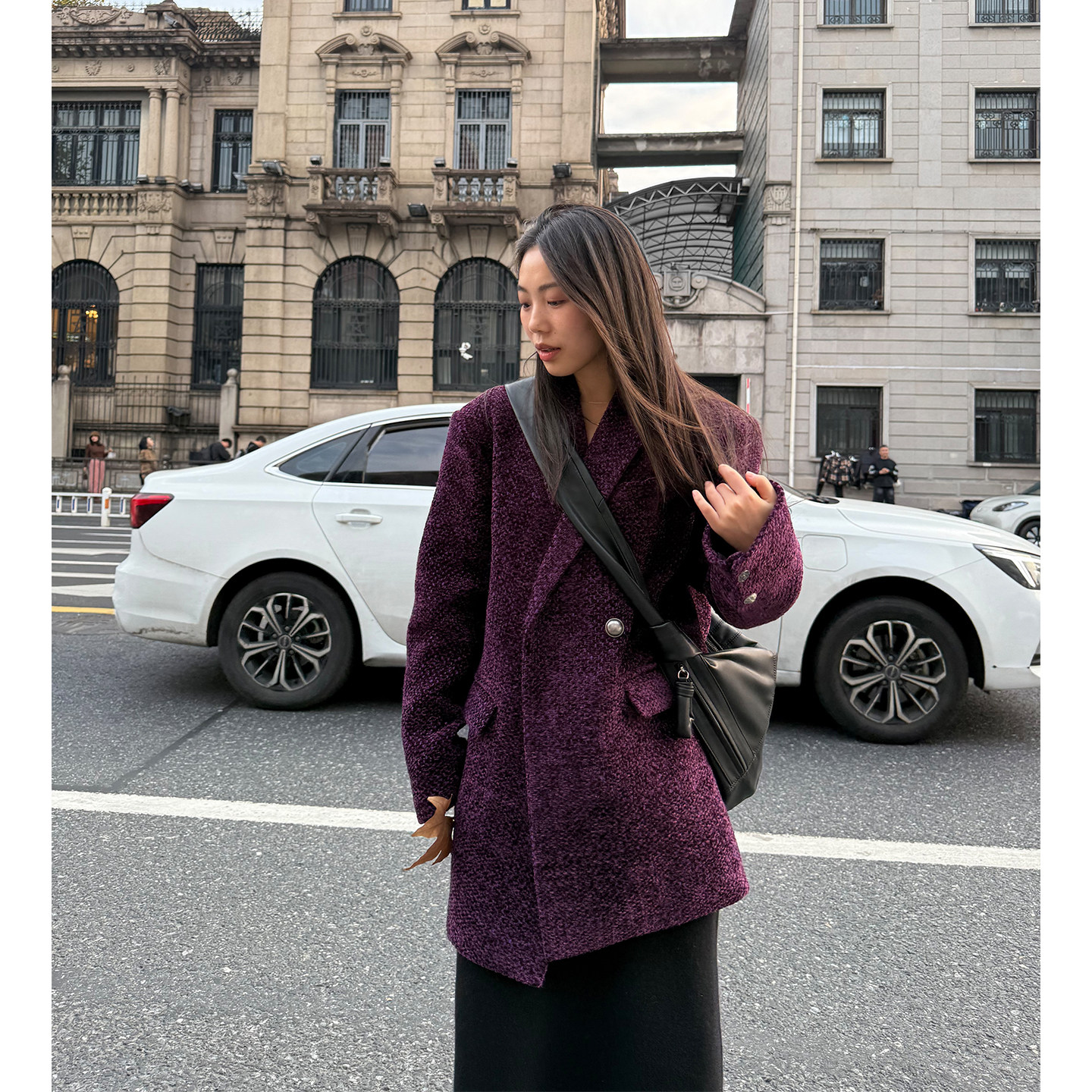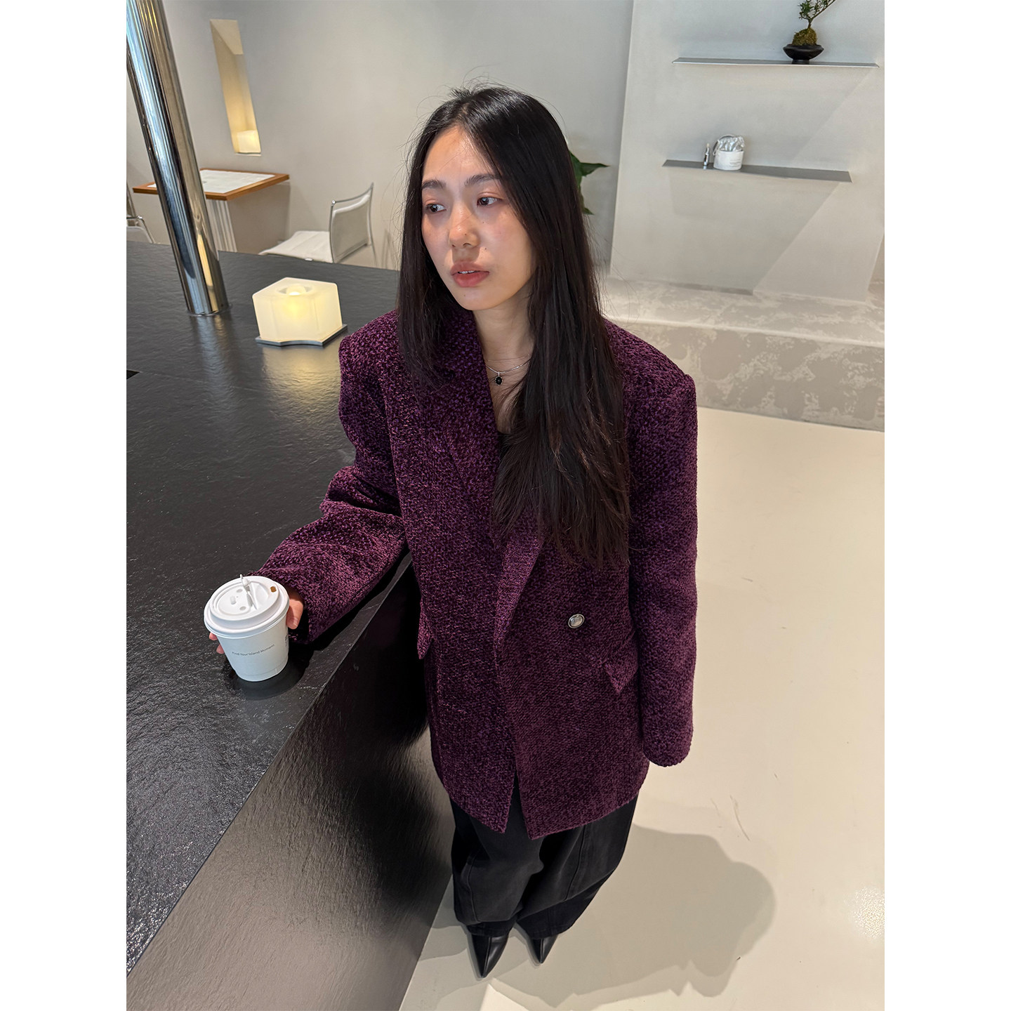 原创设计师款 grape wang 紫藤萝 宽松百搭上衣 小香风外套秋冬西装