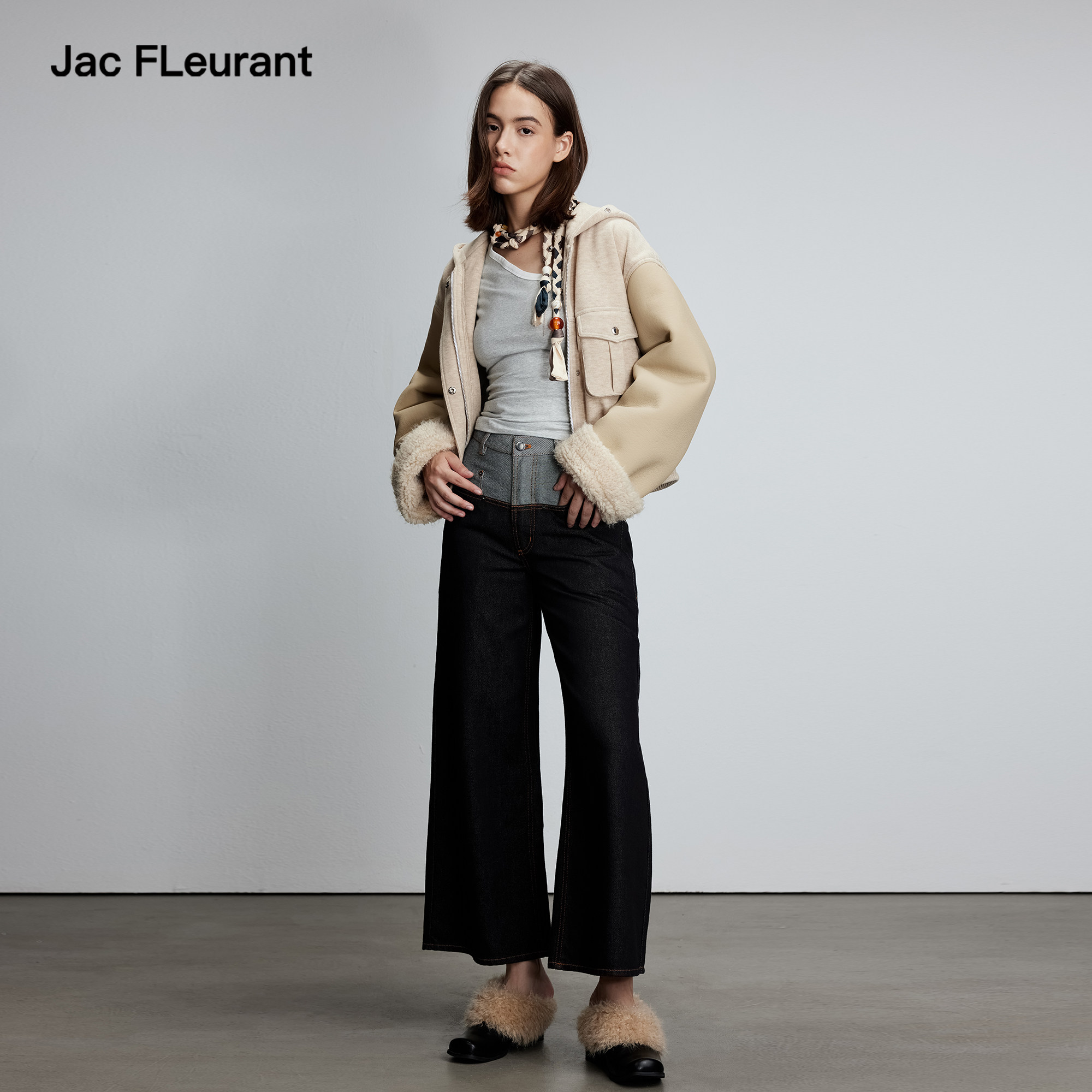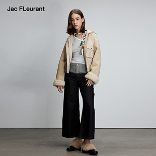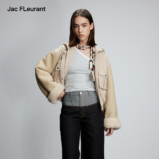 JAC 米色拼色皮袖 连帽棉服面包服时尚 简约女士 FLEURANT秋冬新品由