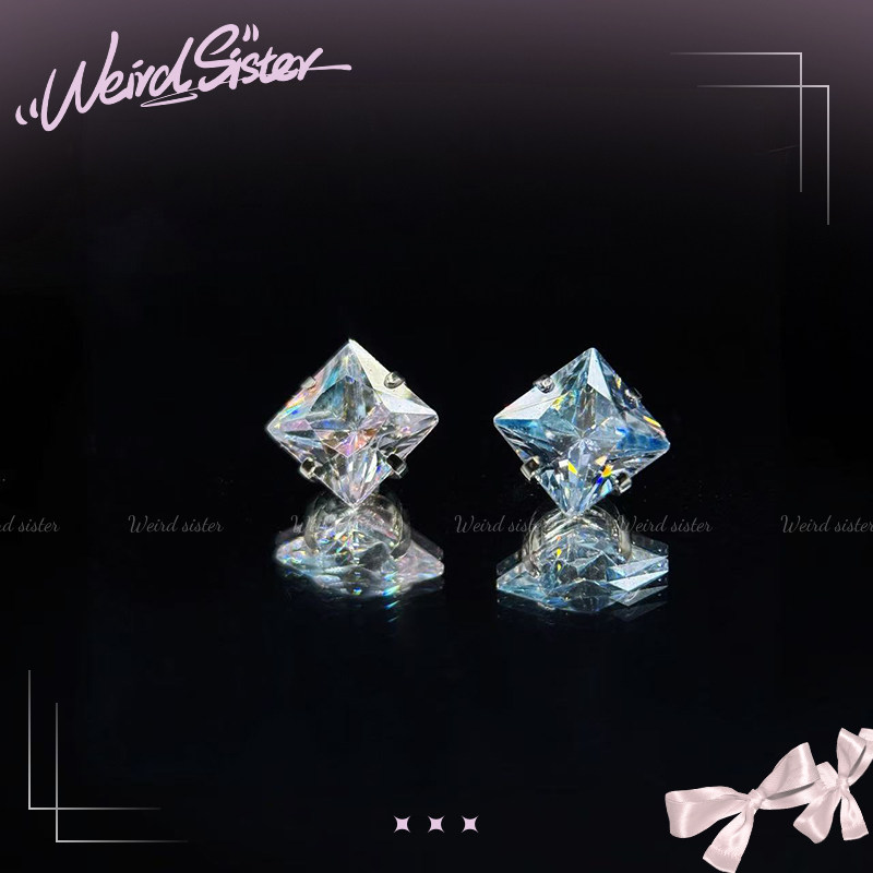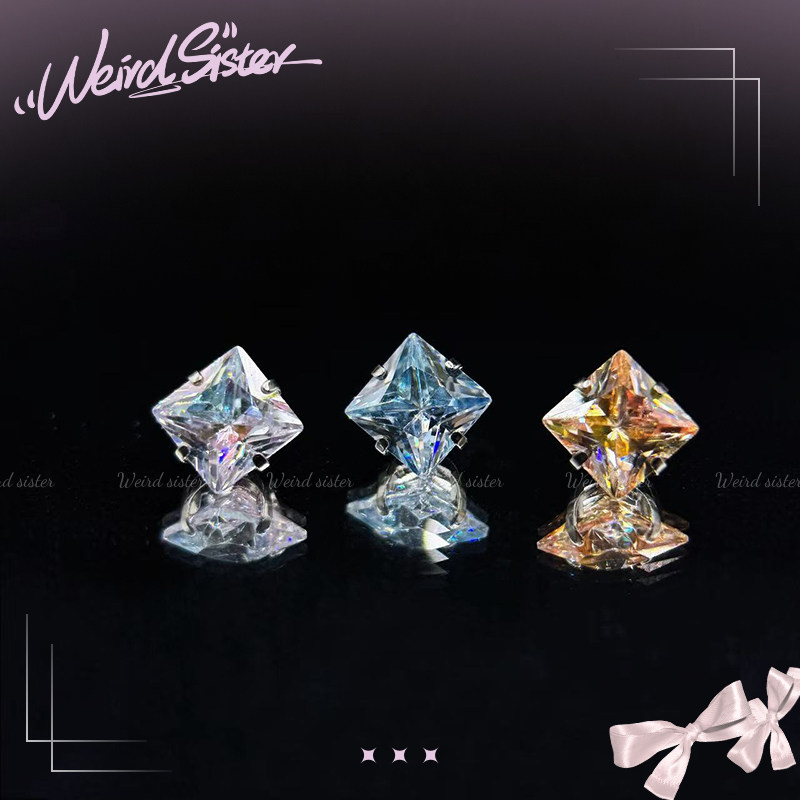 爆闪渐变方形冰糖锆石耳骨钉耳蜗钉医用钛合金耳钉养耳洞防过敏