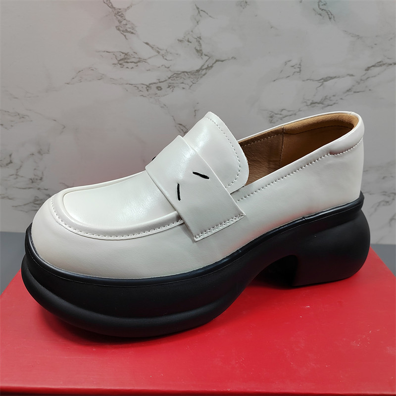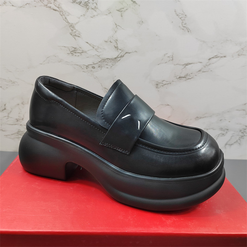 爆款 品牌真皮女鞋 松糕玛丽珍鞋 女乐福鞋 厚底 小个子增高7cm小皮鞋