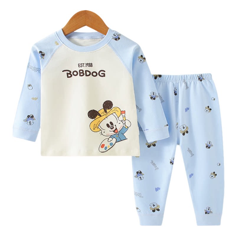 100%全棉巴布豆儿童秋衣秋裤 韩版 男童长袖 内衣家居服宝宝睡衣 套装由
