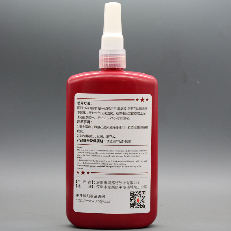 耐油防水蓝色中强度可拆卸厌氧密封胶 固百力243螺丝胶250ml大瓶装