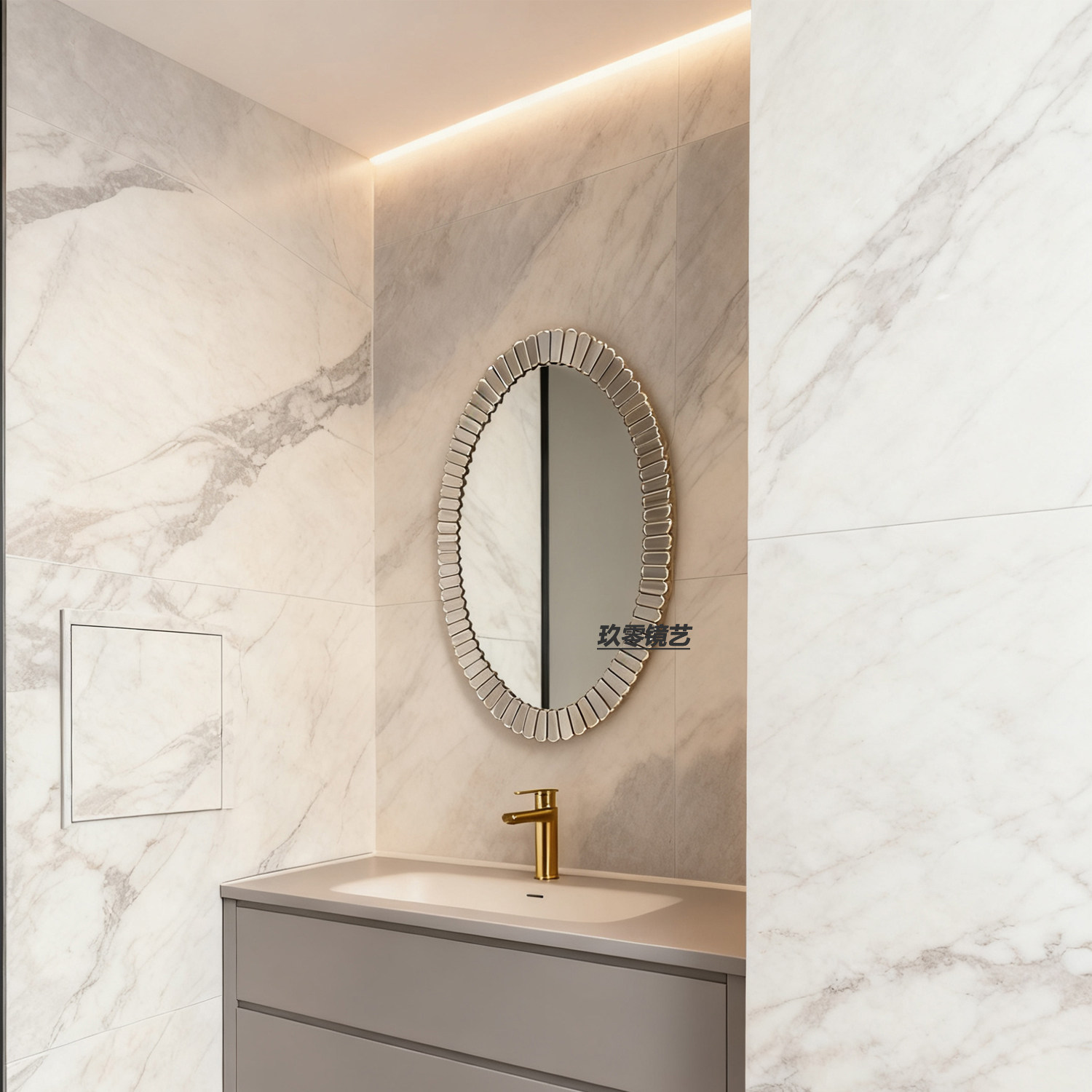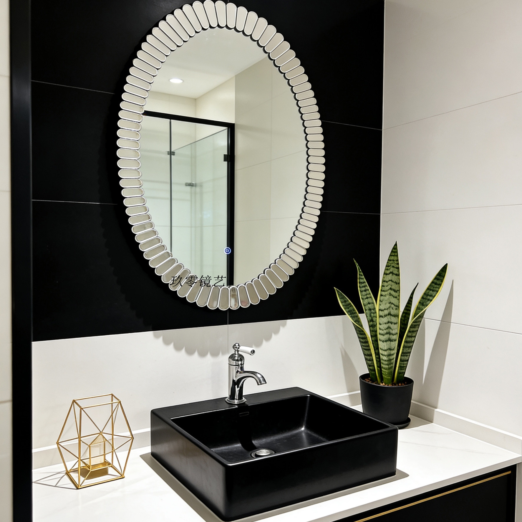 为您提供商品浴室镜椭圆花瓣智能壁挂除雾led带灯轻奢卫生间化妆镜子M9008 法式的详细介绍,