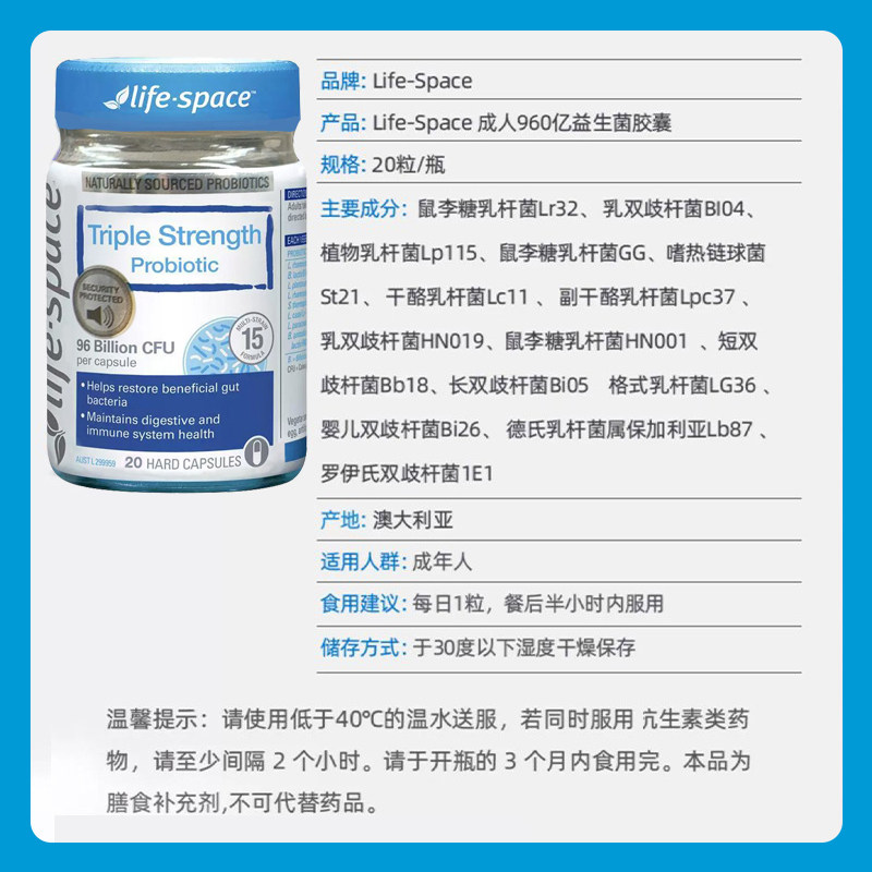 ⭐小红书推荐⭐澳洲life space 960亿三倍成人益生菌肠胃养护3倍320亿肠道保护,所属益生菌分类,由淘宝网挑选推荐!小红书抖音网红同款!哪里有卖澳洲life space 960亿三倍成人益生菌肠胃养护3倍320亿肠道保护和多少钱质量怎么样✅。