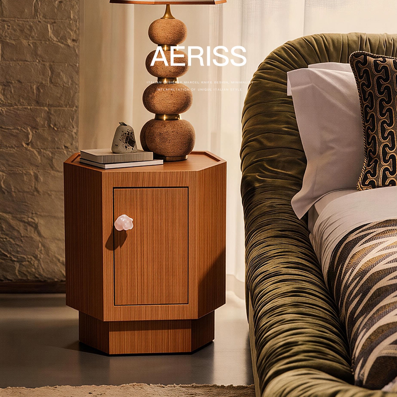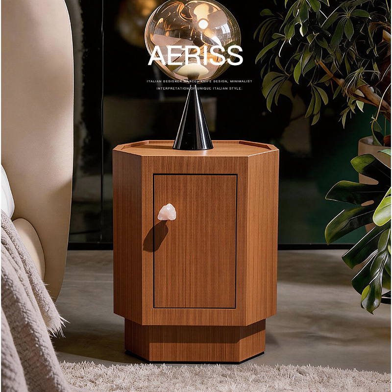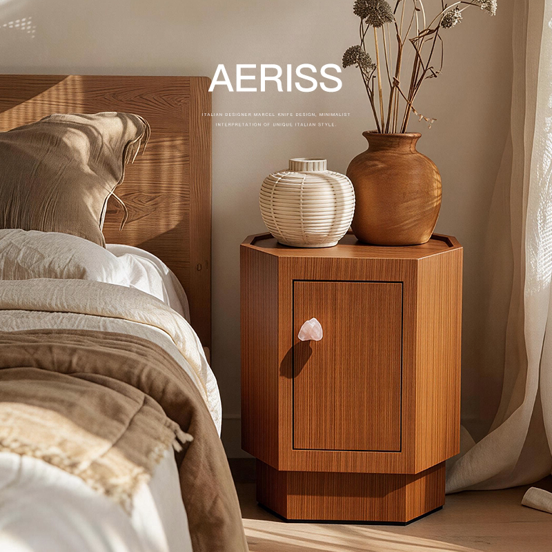 已夏静谧系列中古复柚木个性 侘寂风水晶床头柜置物储物设计师新款由