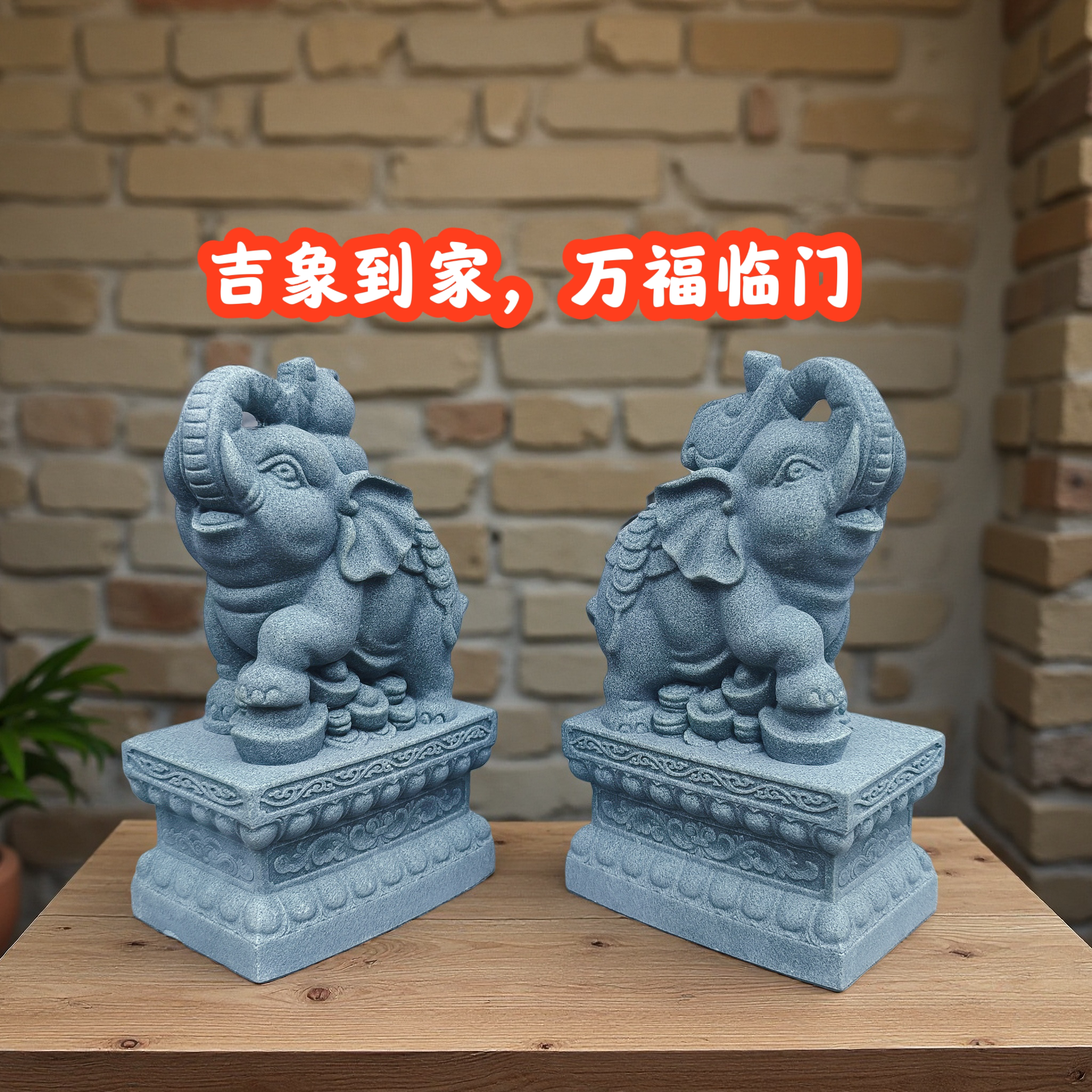 为您提供商品饰客厅办公室家用门口风水摆件 青砂石大象一对招财小象装的详细介绍,