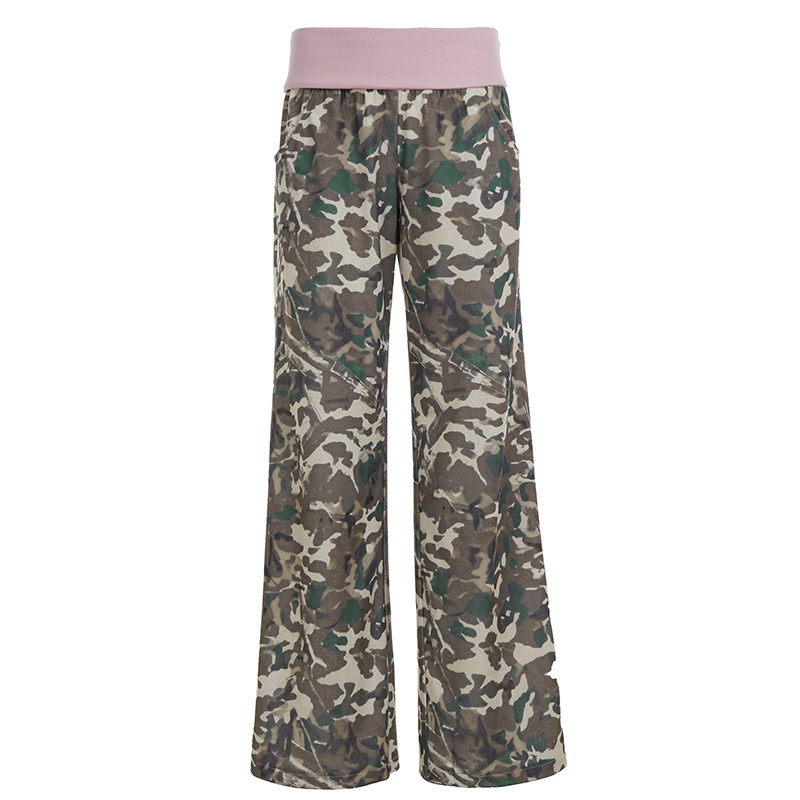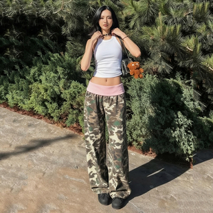 腰头拼接撞色迷彩低腰休闲裤 ROCKMORE 美式 复古 宽松显瘦阔腿裤