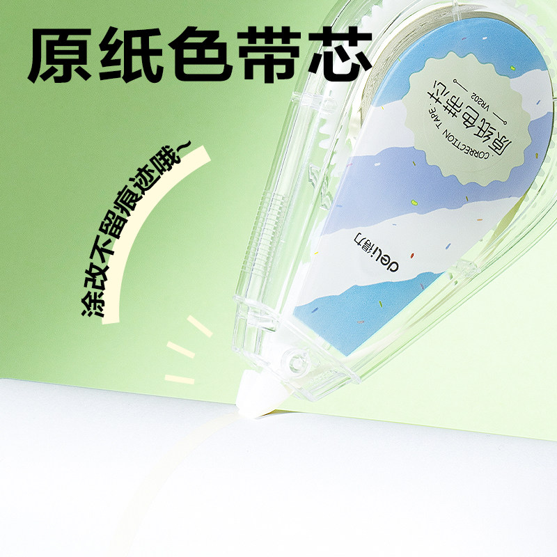 得力轻音修正带彩色静音学生用涂改带修正贴修改带改正大容量改正带小学生初中生专用修改带高颜值女生改错