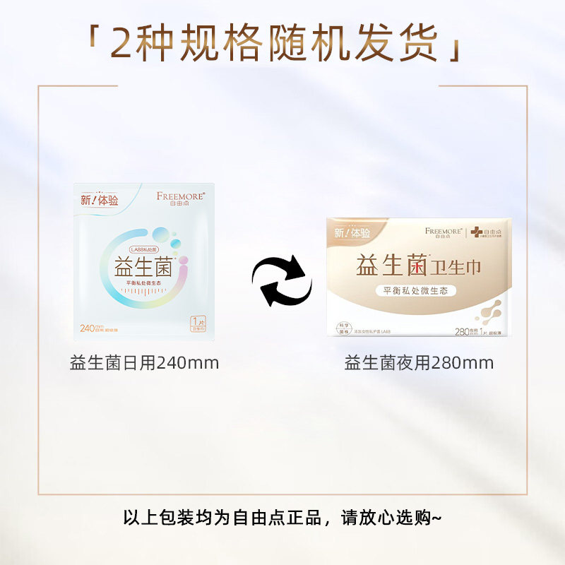 自由点益生菌卫生巾有机纯棉表层日夜用组合143片超薄姨妈巾正品由