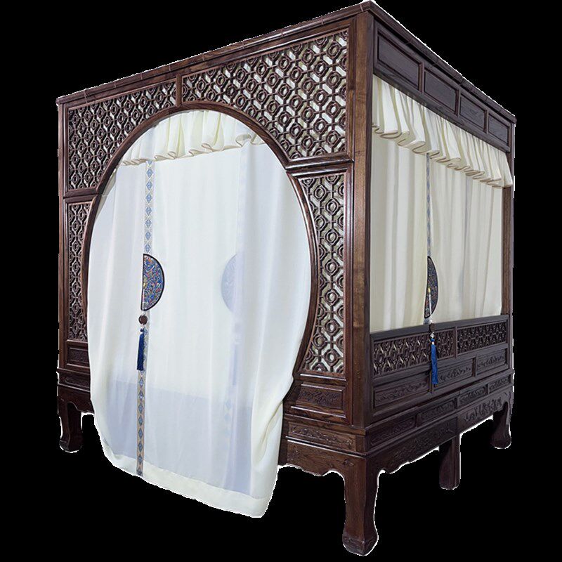 中国宫廷奶油风复古浪漫架子床床幔古风家用卧室肤感X纱蚊帐定制由