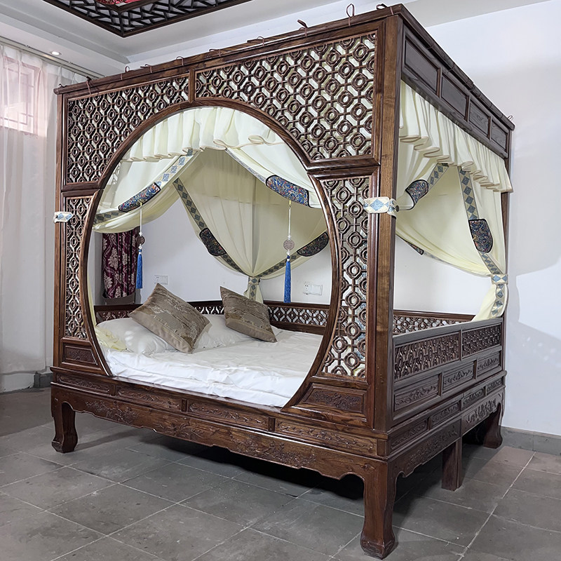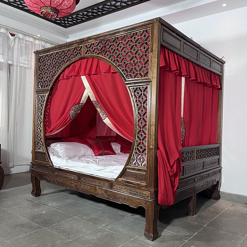中国宫廷奶油风复古浪漫架子床床幔古风家用卧室肤感X纱蚊帐定制