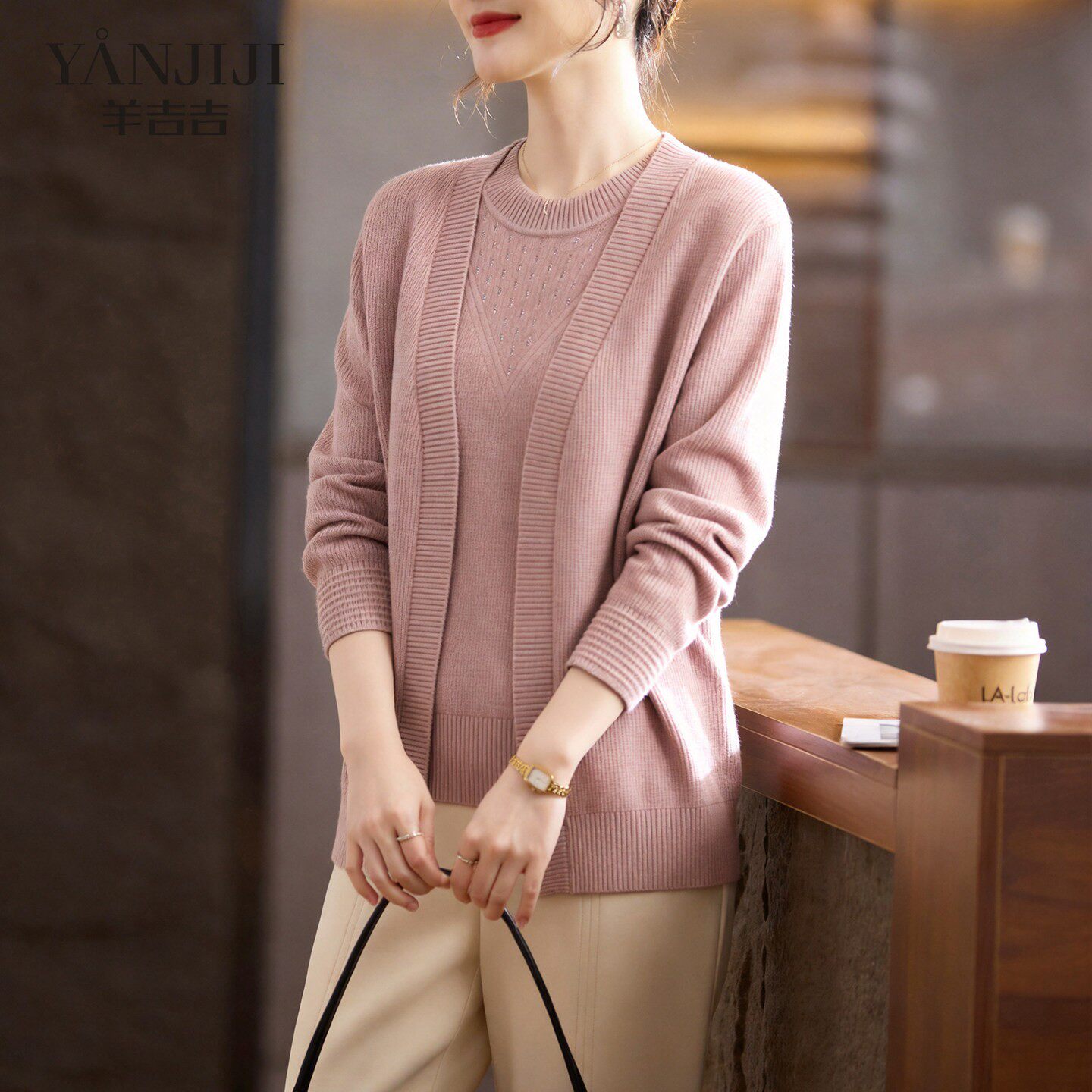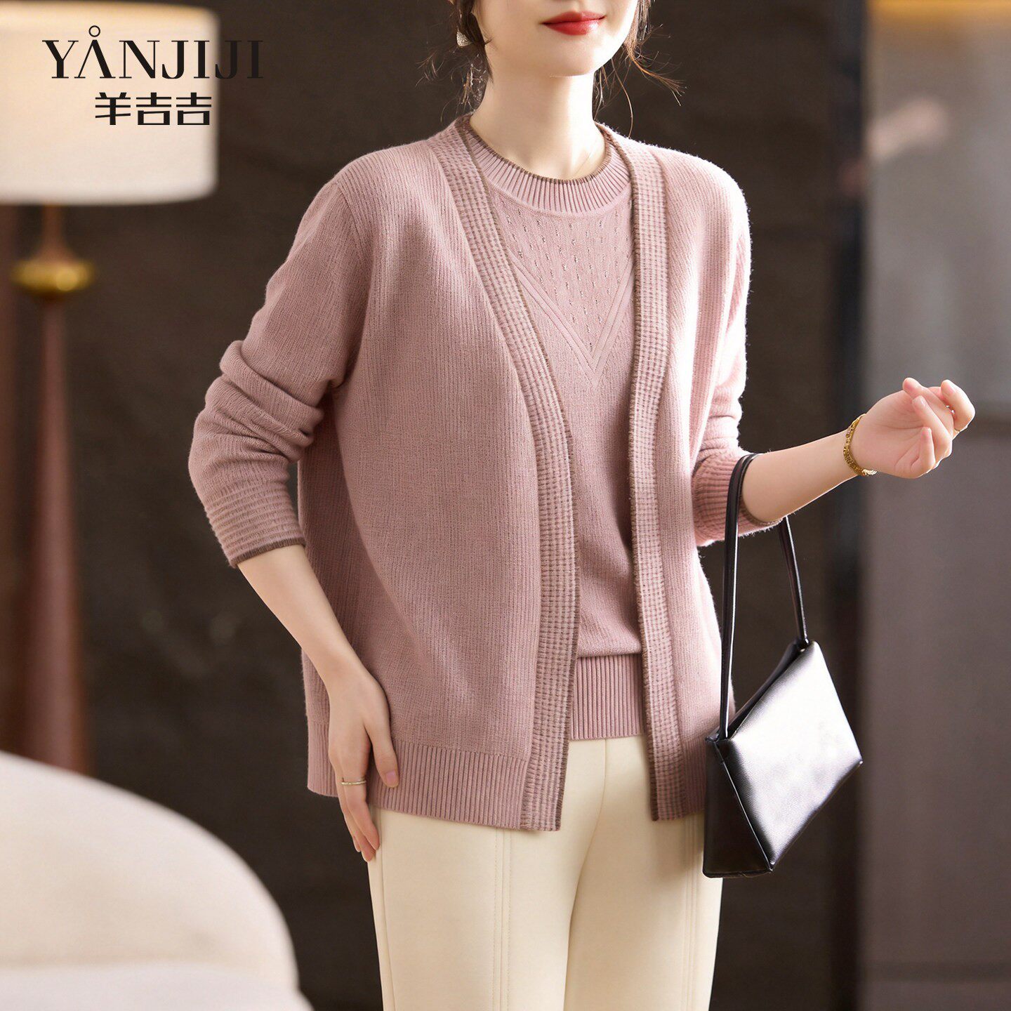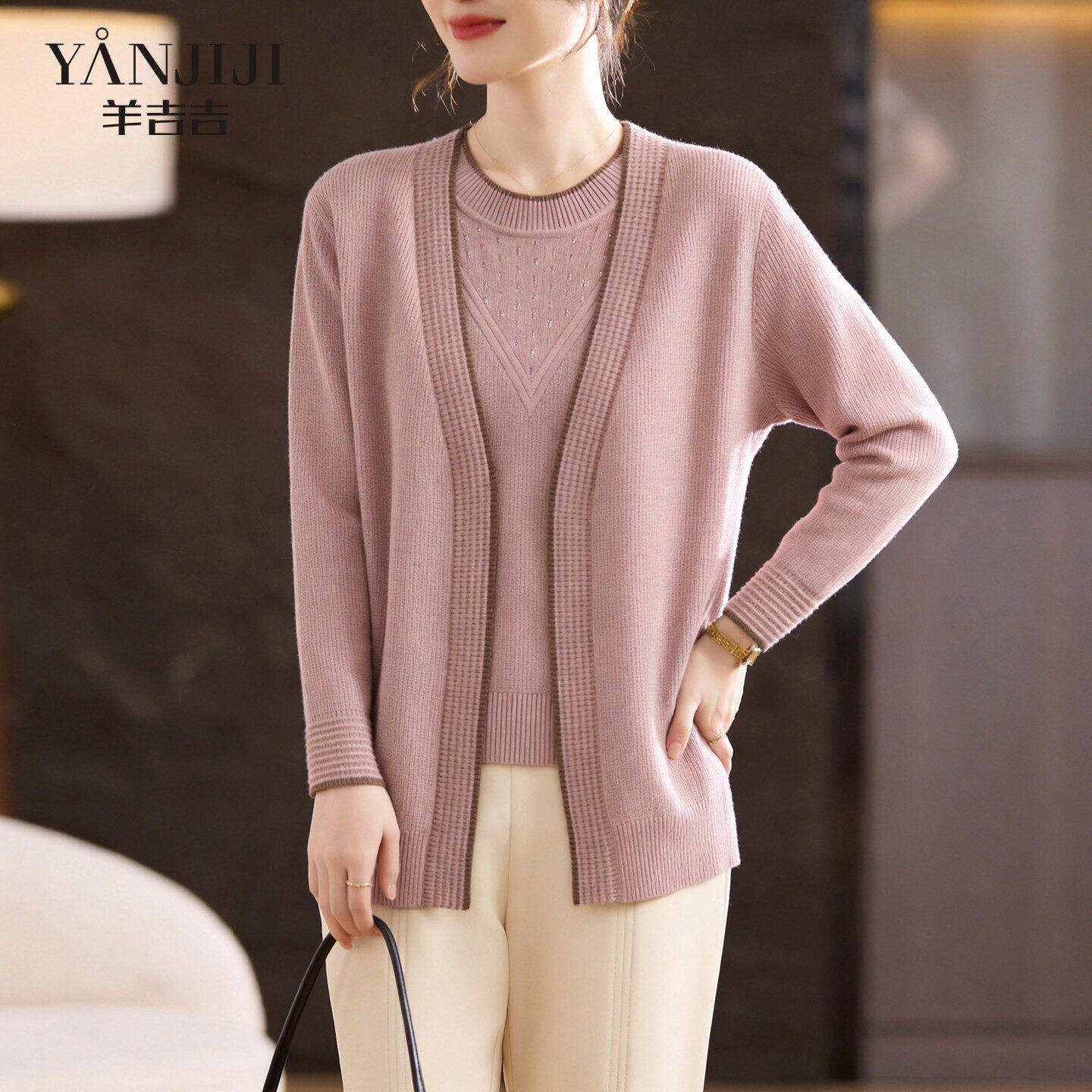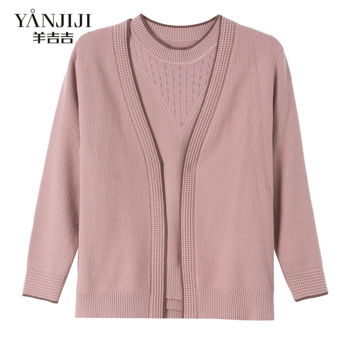 妈妈套装 中年女装 T恤衫 上衣 薄款 两件套洋气春装 开衫 针织衫 春夏季由