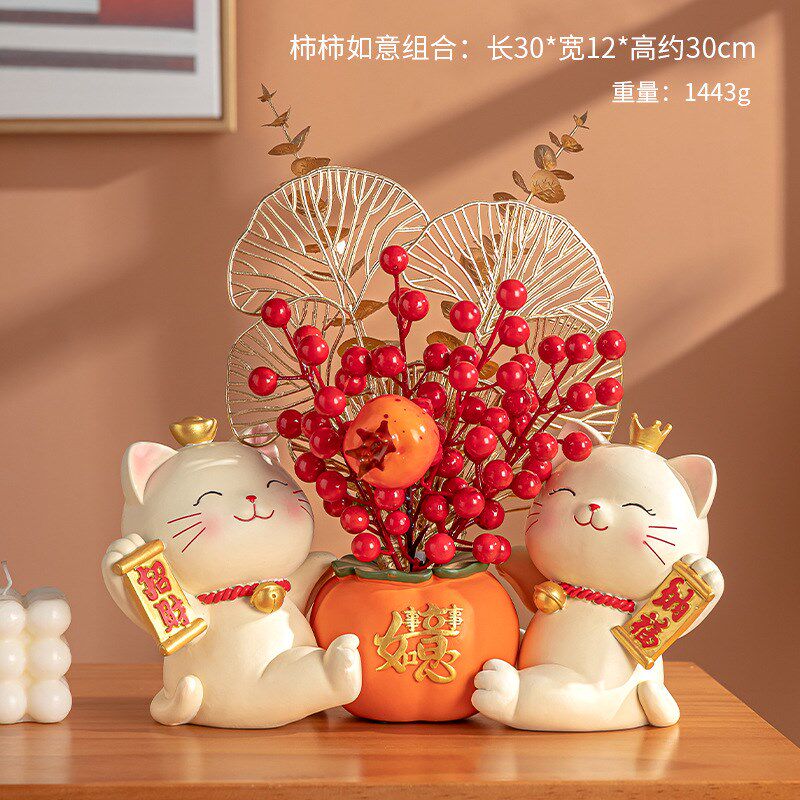 为您提供商品饰品客厅新房搬家 招财猫事事如意柿子摆件入户乔迁新居之喜家居装的详细介绍,