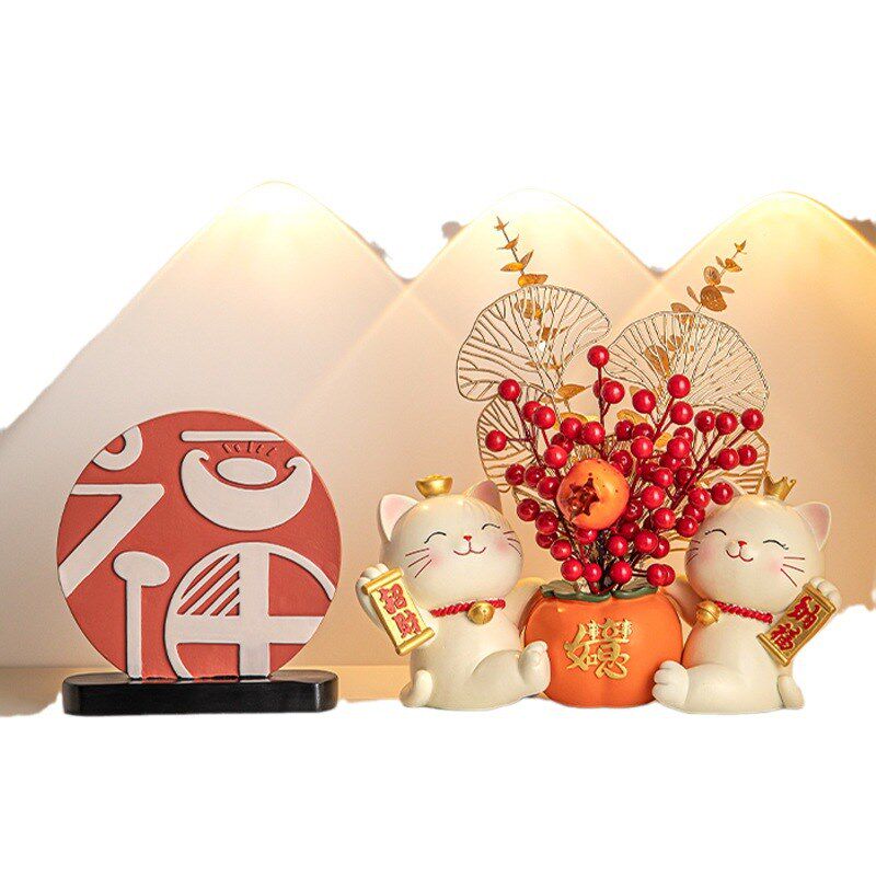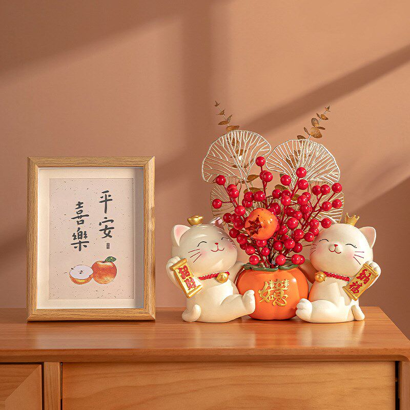 饰品客厅新房搬家 招财猫事事如意柿子摆件入户乔迁新居之喜家居装由
