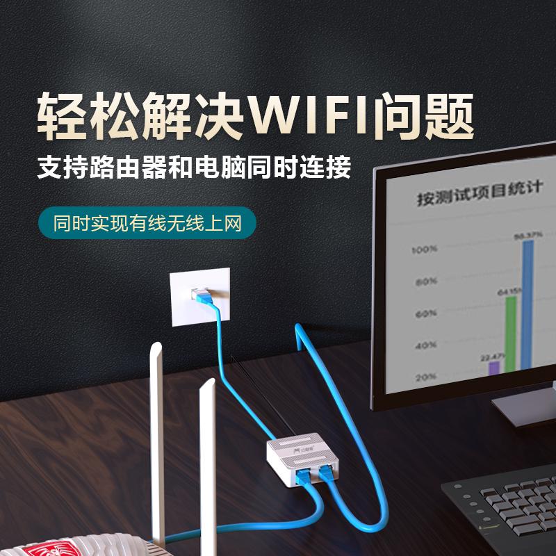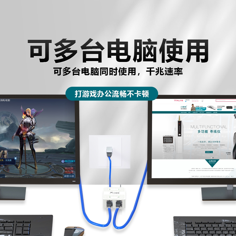 千兆网线分线器1000Mbps快速传输两台设备同时上网对接头转接口延长一拖二三四以太网百兆1分2交换机 BZIZU由