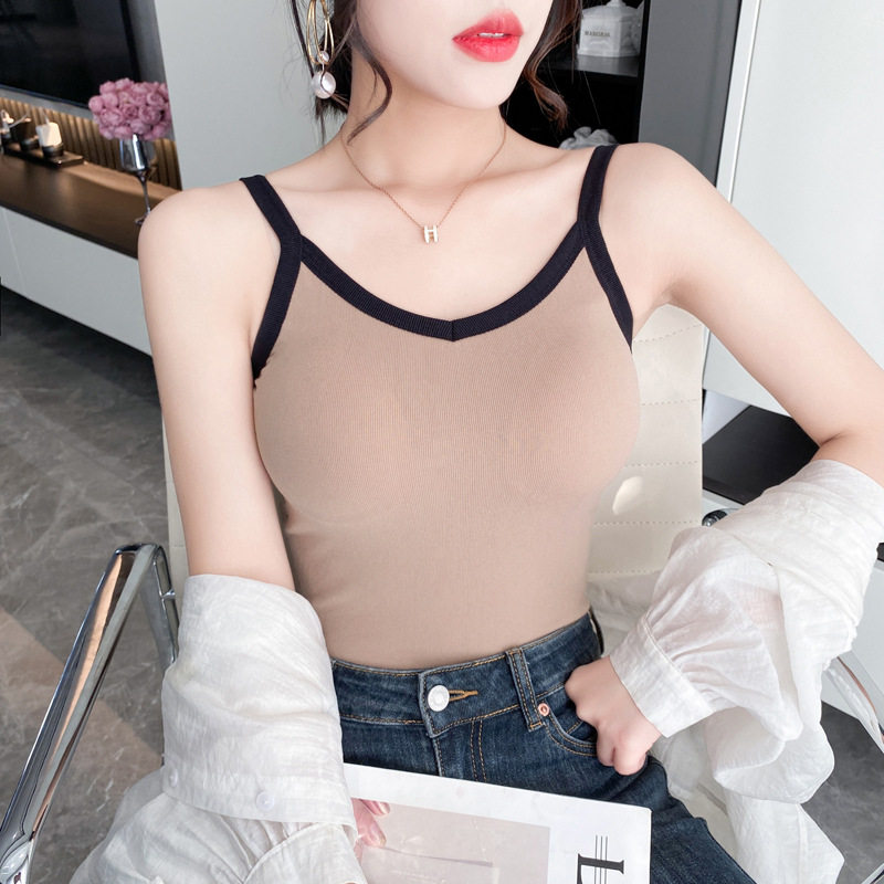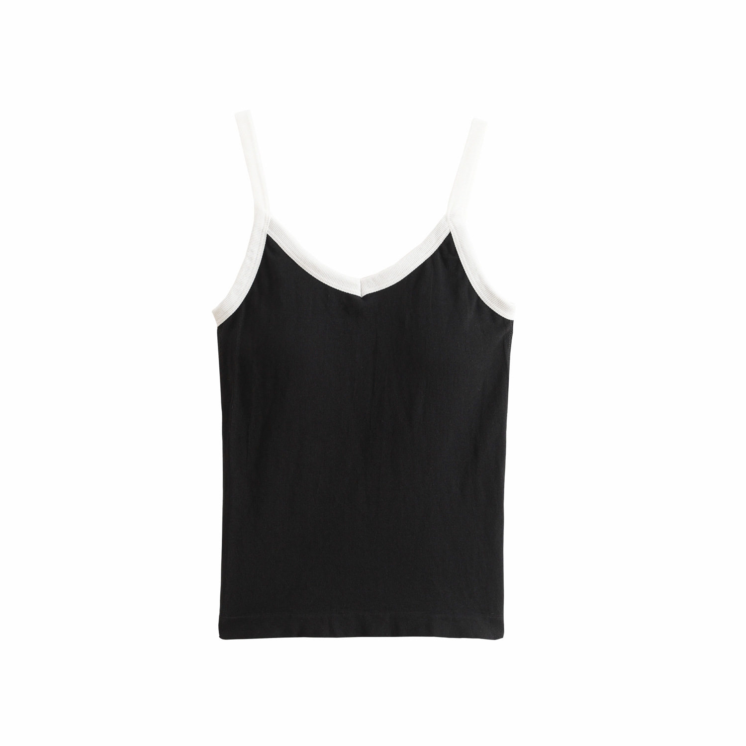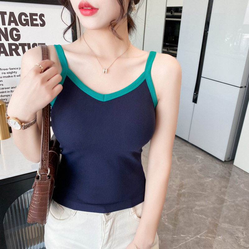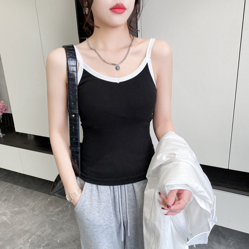 2025新款 撞色修身 显瘦带胸垫吊带背心短款 性感露脐外穿上衣 韩韩版