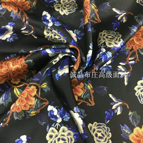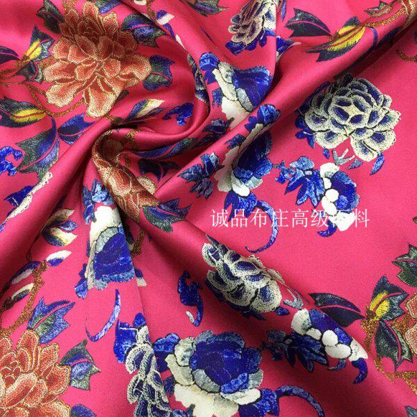 印花旗袍连衣裙中国风桑蚕丝绸布料 40姆米重磅真丝缎面料牡丹数码