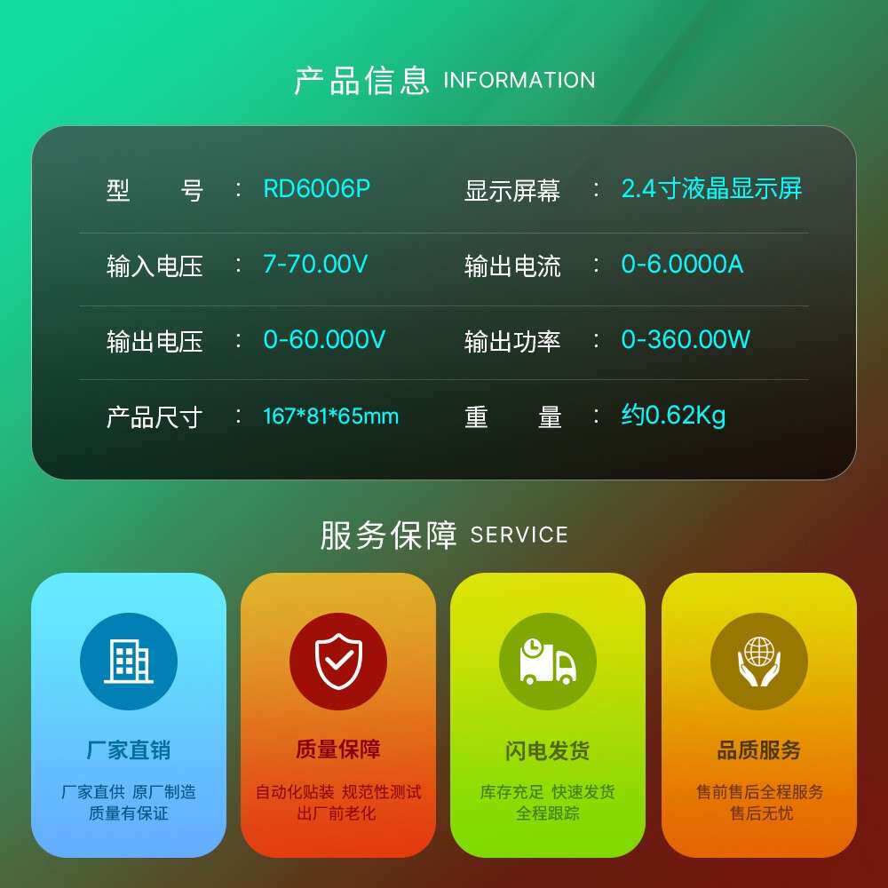 为您提供商品程控线性电源实验维修稳压源表 睿登RD6006P数控五位可调直流开关的详细介绍,
