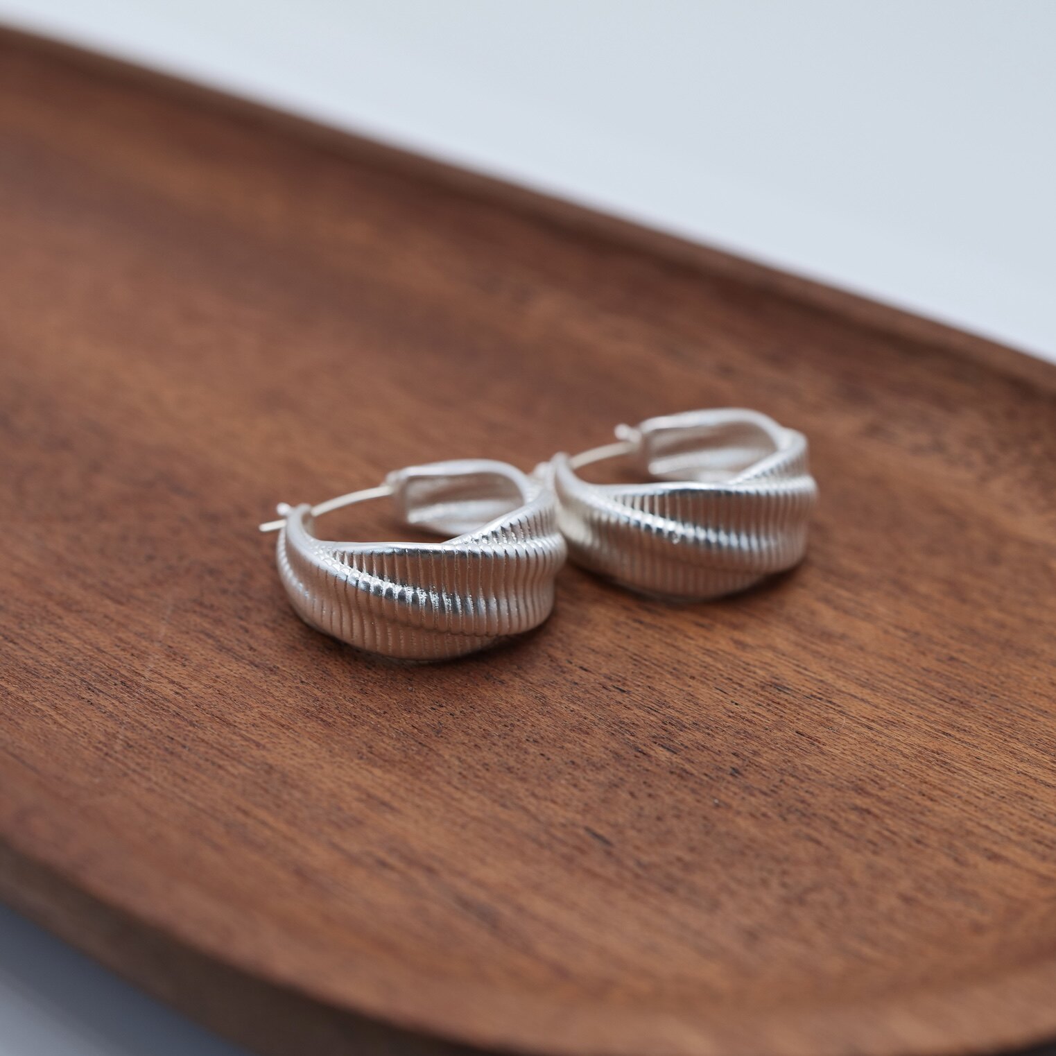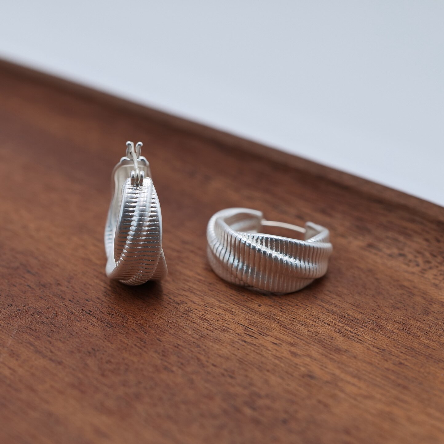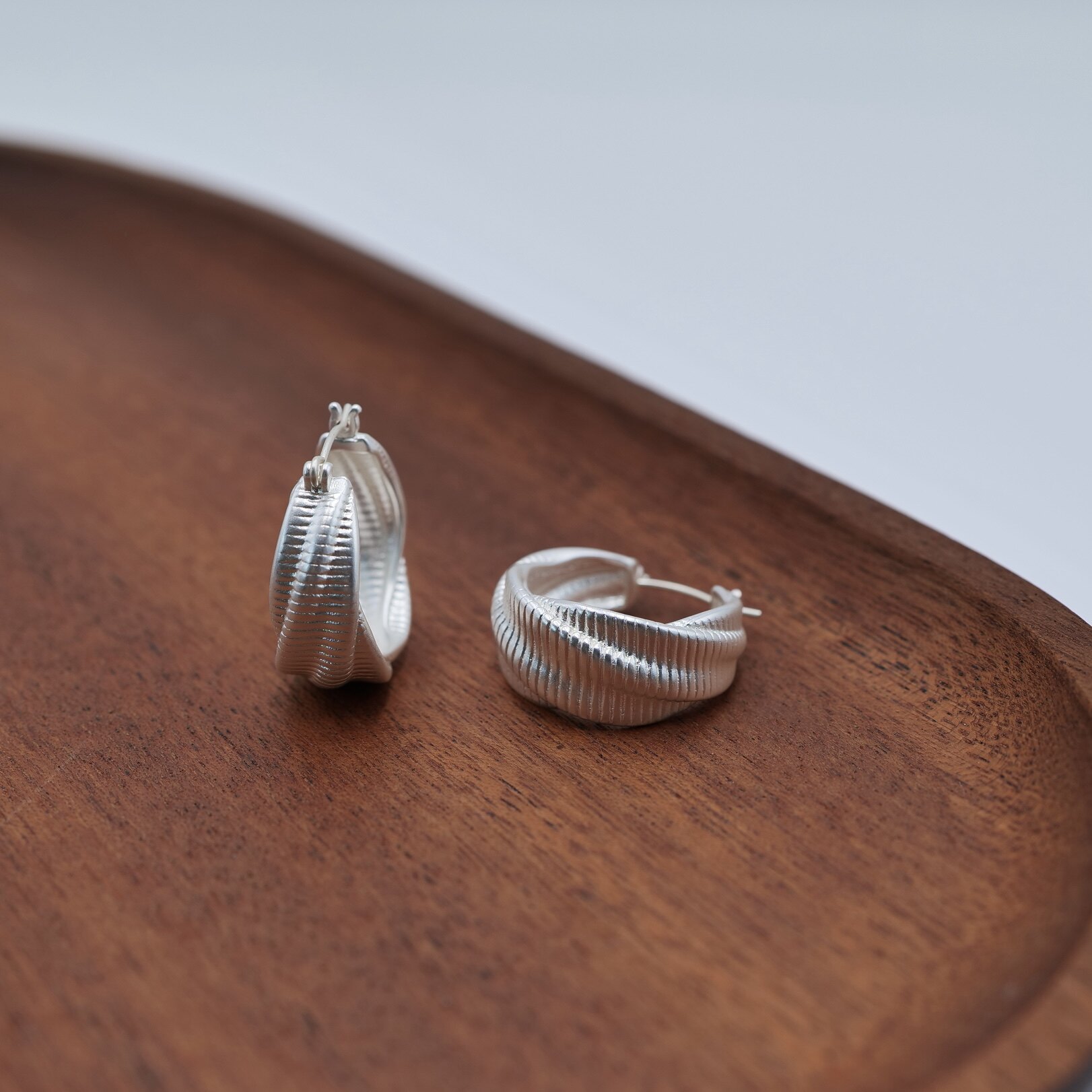 银装 哑光银色螺纹肌理感缠绕耳环简约精致高级时髦清冷 素裹由