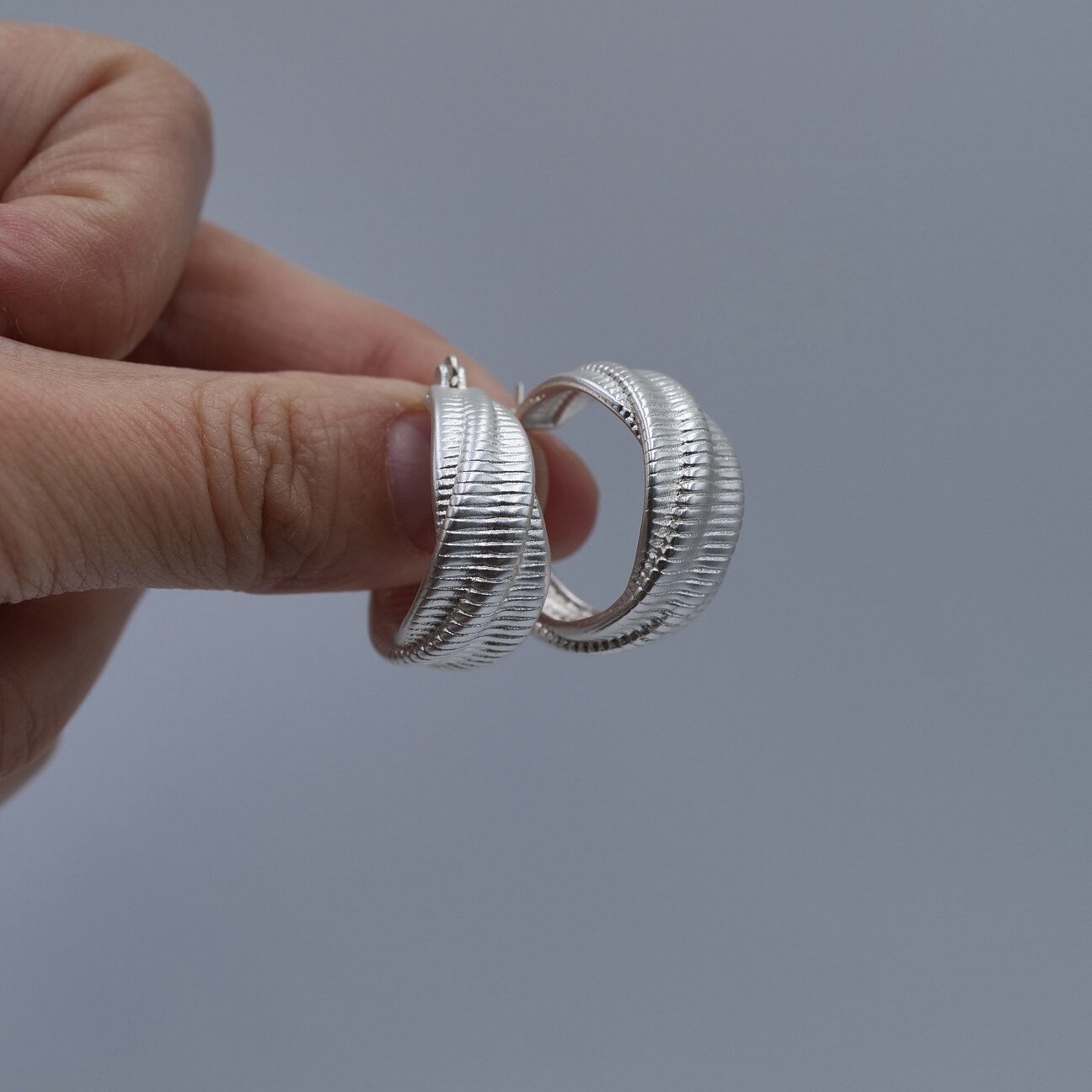 银装 哑光银色螺纹肌理感缠绕耳环简约精致高级时髦清冷 素裹