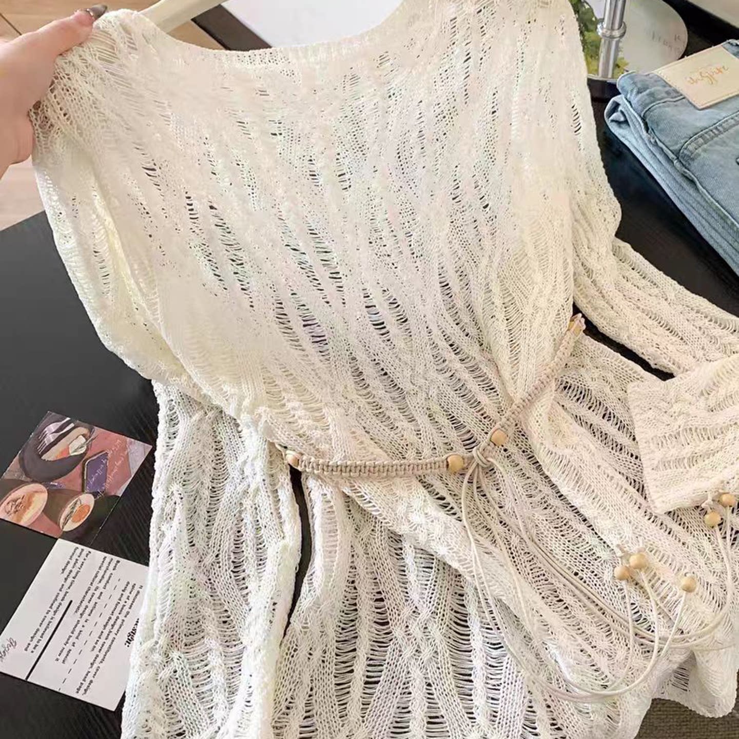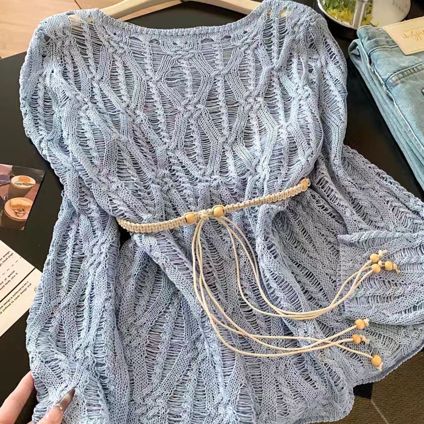 针织罩衫 女韩系氛围感显瘦防晒上衣潮 镂空绞花薄款 2026春夏新款