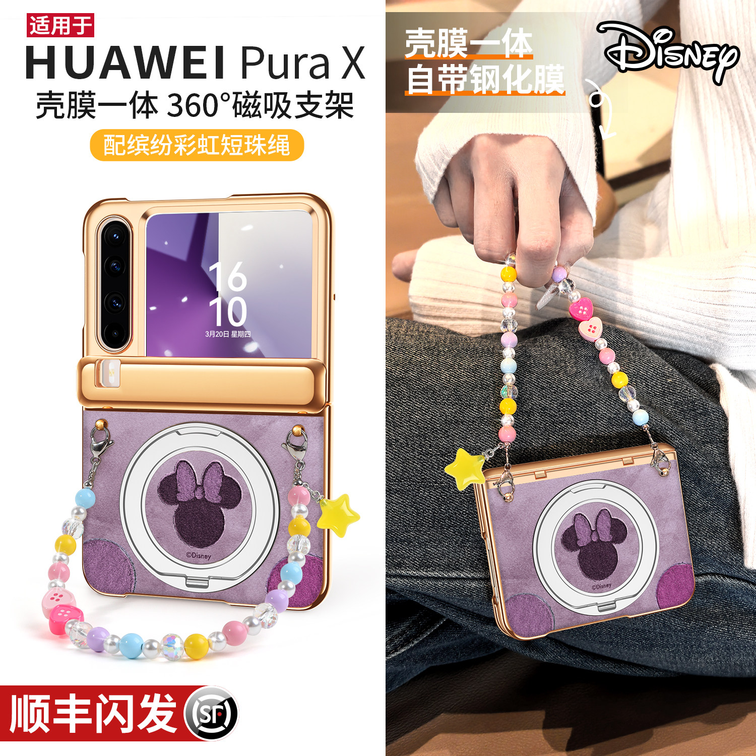 壳膜一体适用华为purax阔折叠屏新款 手机壳pura典藏版 x中轴全包支架保护套pure带挂绳斜挎px外壳 迪士尼正版