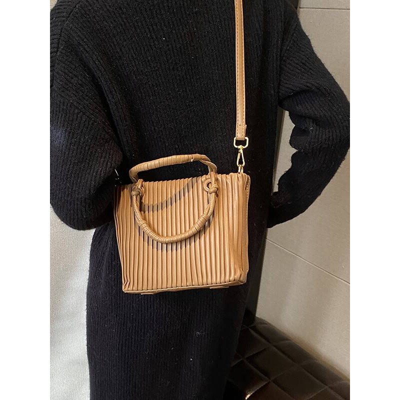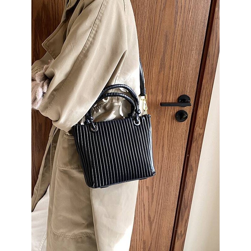 托特包编织褶皱条纹单肩包高级感时尚 百搭手拎斜 法式 官方2026新款