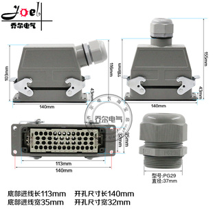 HEE046工业防水插座16A 46芯冷压重载连接器矩形航空插头插座H24B由
