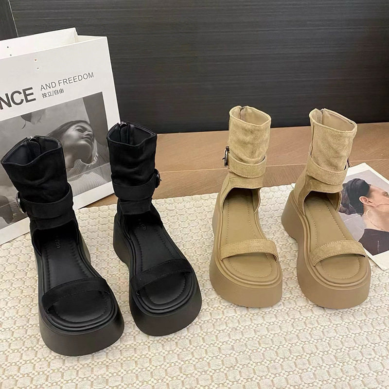 新复古厚底罗马凉靴时尚 套趾短靴A58 外穿2026夏季 厚底罗马凉拖鞋由