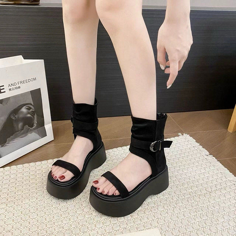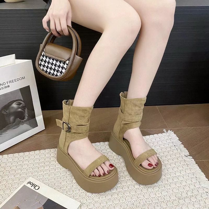 新复古厚底罗马凉靴时尚 套趾短靴A58 外穿2026夏季 厚底罗马凉拖鞋
