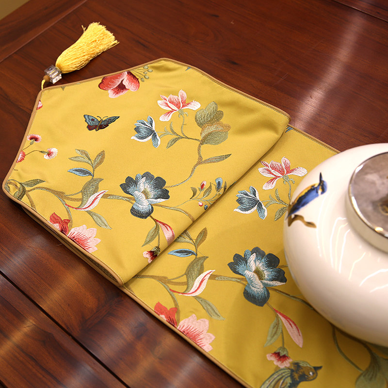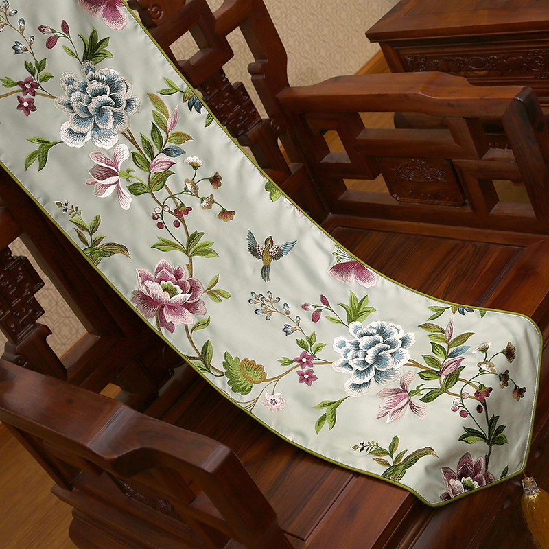 中式 床旗茶几布玄关电视柜饰布 刺绣桌旗现代茶几桌旗欧式